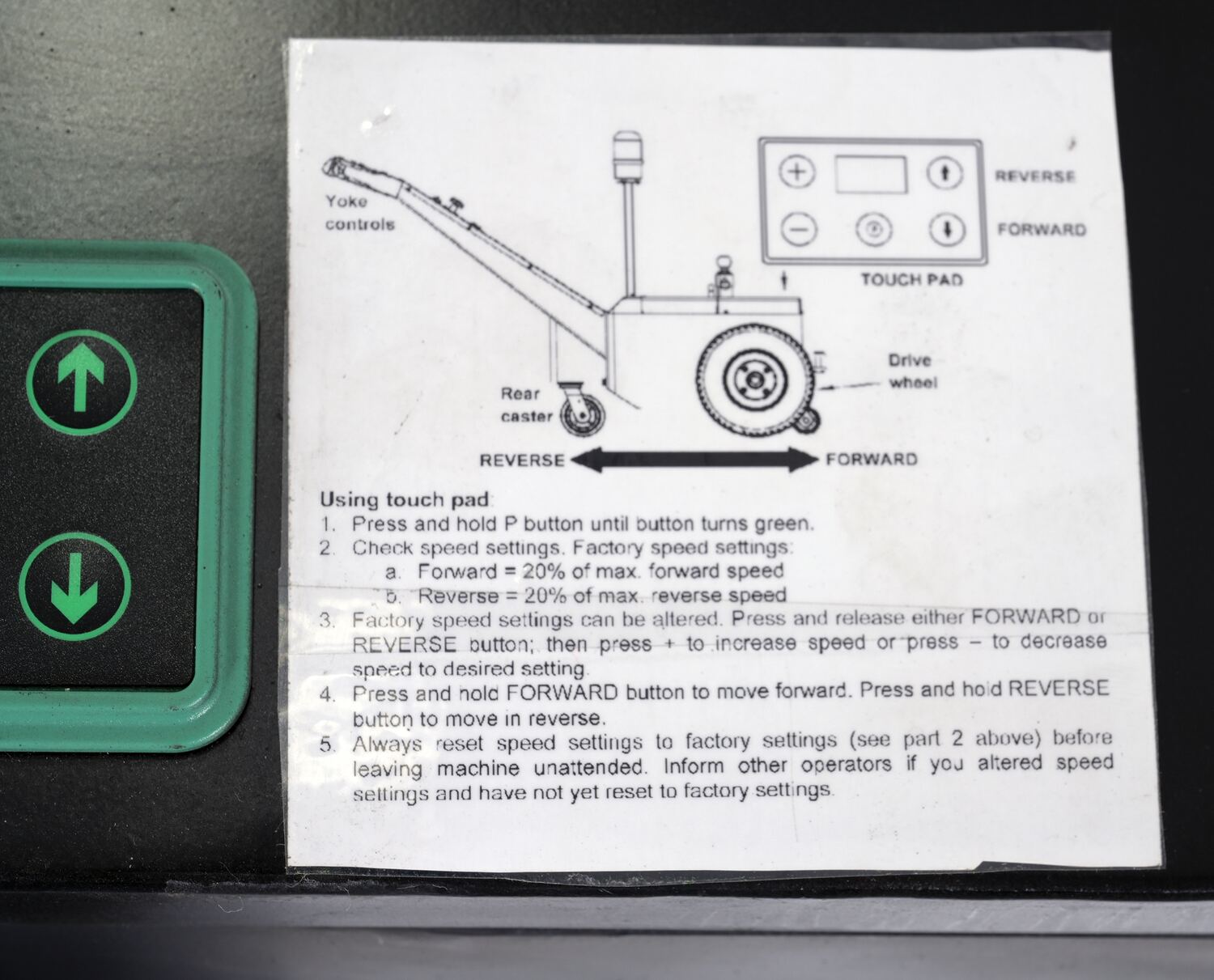 Caster 2 Front Rubber Tire size (in.): 15" x 4.5" Caster 2 Rear Rubber Tire size (in.): 6" x 2" Control: Hand
