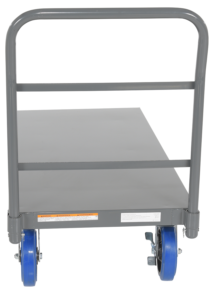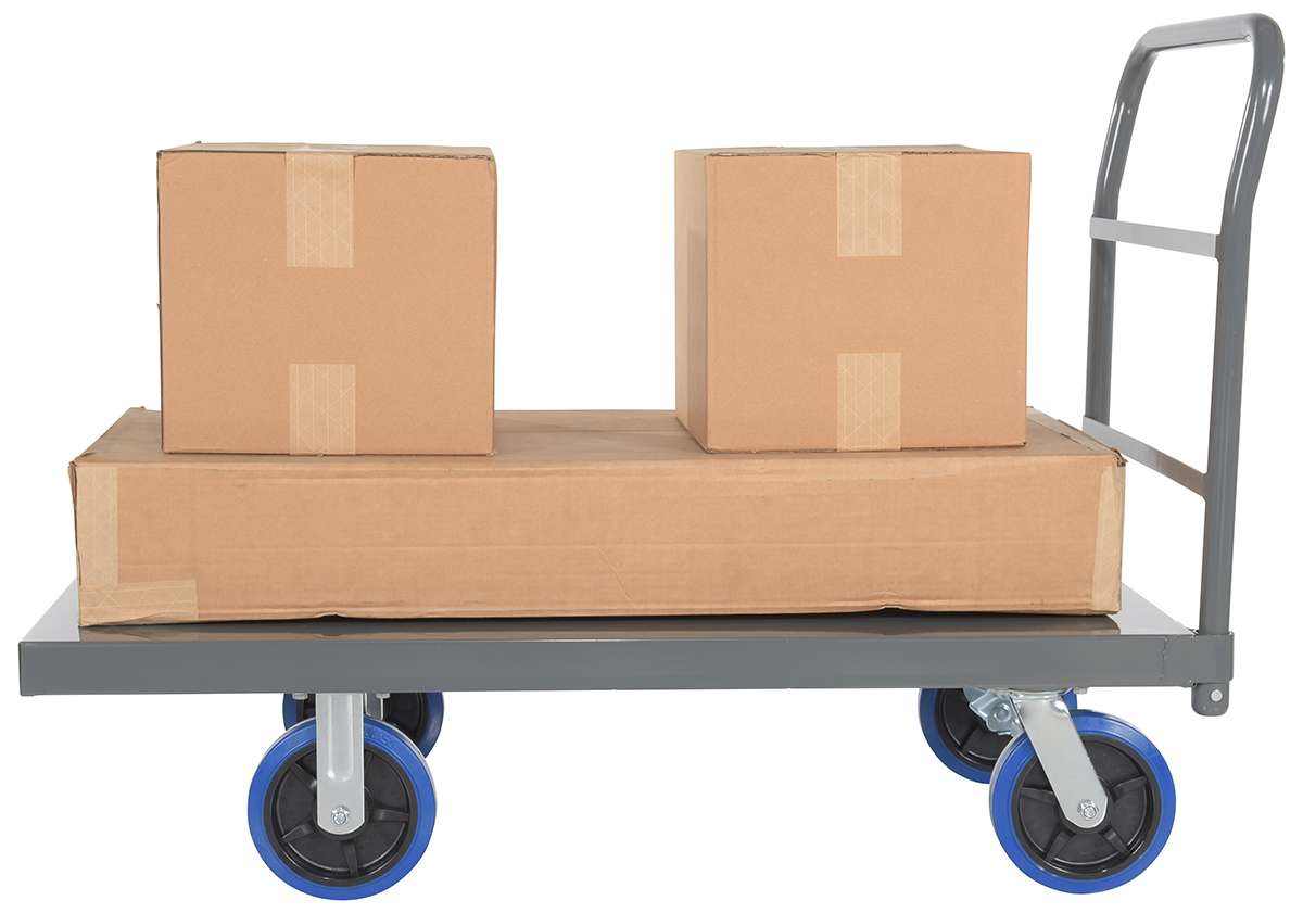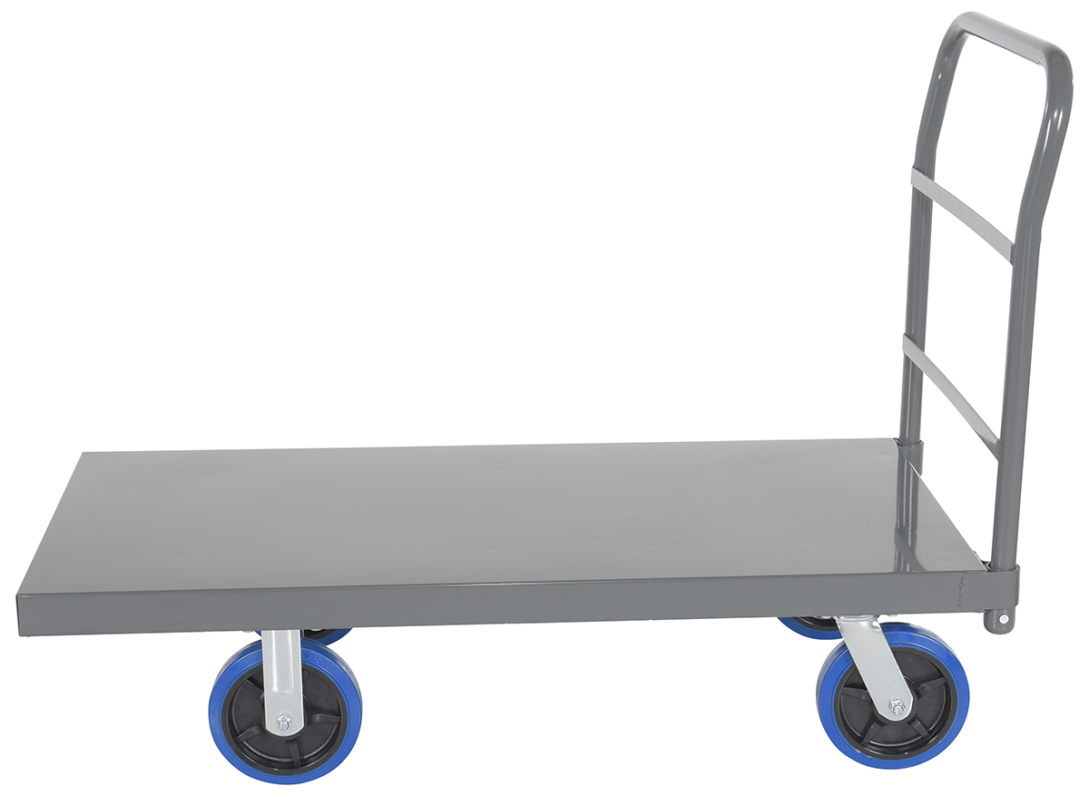 • Platform truck with solid, smooth steel deck is all welded for maximum strength