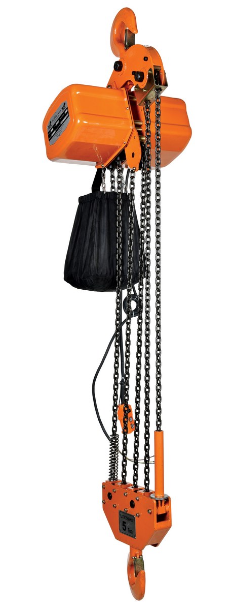 This compact hoist features a high efficiency motor with convenient push-button operation. Single phase power available. Unit is dust and water resistant, load limit fitted. Chain container included.