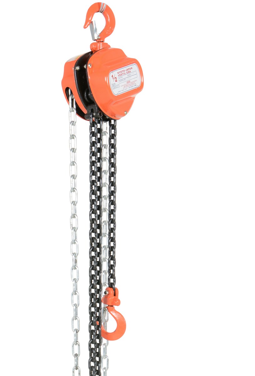 This portable, lightweight hand Chain Hoist is durable and easy to operate. Compact design and low headroom allow installation in confined areas. Enclosed double ratchet pawls with self adjusting disc brake standard. Designed with a safety factory four (4) times rated capacity. Individually tested at 150% rated capacity. Features black chain tempered to ISO 3077, pull chain, hardened two-stage gears and forged steel upper and lower hooks with safety latches. Constructed of high quality steel components ideal for industrial applications.