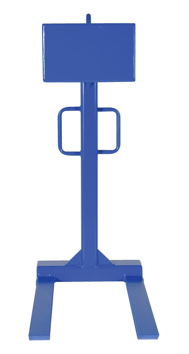 This solid steel pallet lifter contains tapered forks to allow easy access under pallets. Main support contains handles to allow personnel to position the unit. Large square head serves as a counterweight to keep the unit level without a load.