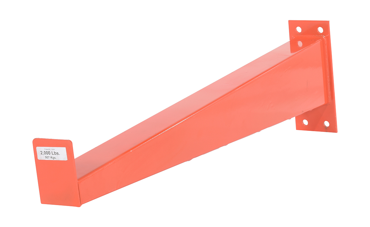 Steel Heavy-Duty Cantilever Straight Arm 48 In. Length 2,000 Lb. Capacity OrangeThe Heavy Duty Cantilever rack is completely adjustable for application specific design flexibility. Long, welded stock is handled quickly and efficiently by forklift; instant accessibility to one (1) piece or a full load. These heavy-duty arms are adjustable up and down the length of the upright. To adjust, align arms with pre-drilled holes and bolt in (hardware included). All arms feature lips to prevent product from falling off. Uprights and arms are sold each, not in pairs. Custom rack systems can be designed for your special application.