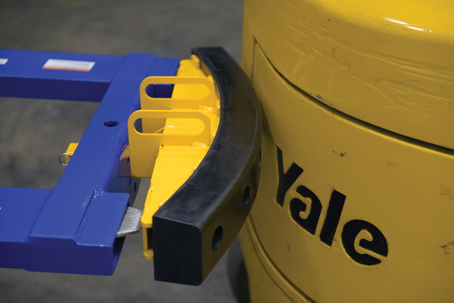Steel Fork Truck Hook Base 44 In. Length With Steel/Rubber Push Bumper-Attachment to 2 In. Receiver 15 In. x 28 In. x 5-3/4 In Blue/Yellow