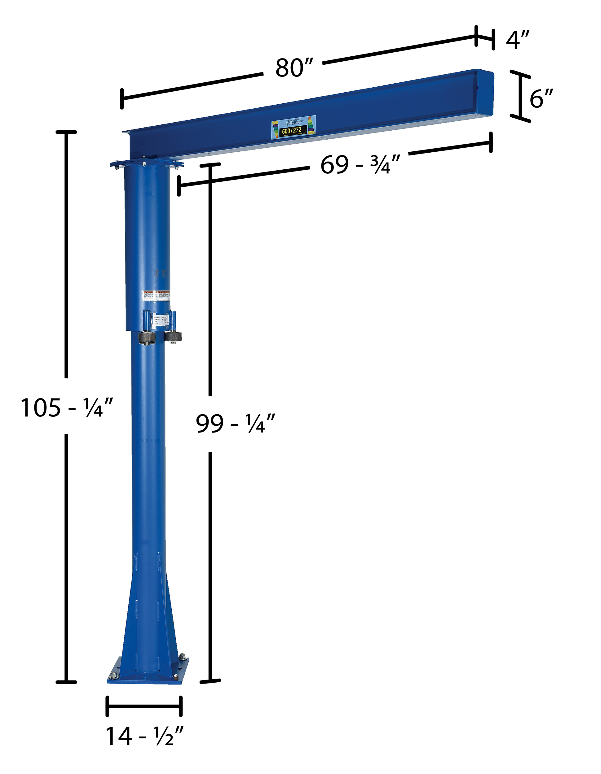 Steel Floor Mounted Jib 80 In. I-Beam 600 Lb. Capacity Blue