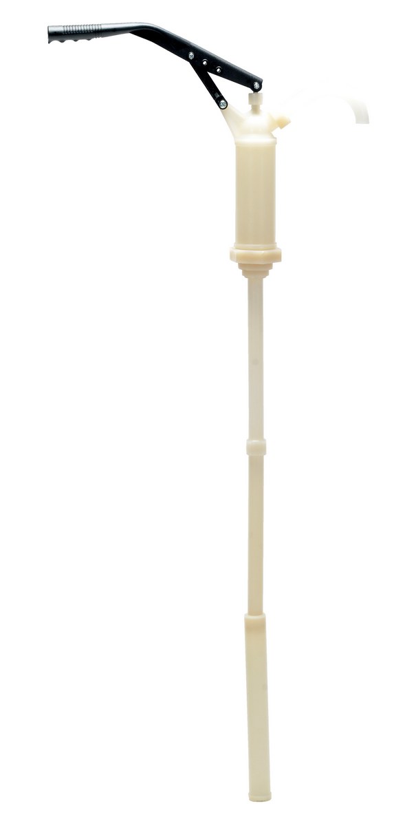 This manual drum pump is designed for dispensing and transferring liquids out of fifty-five (55) gallon drum. This pump with lever action is constructed of PTFE with a stainless steel piston rod.