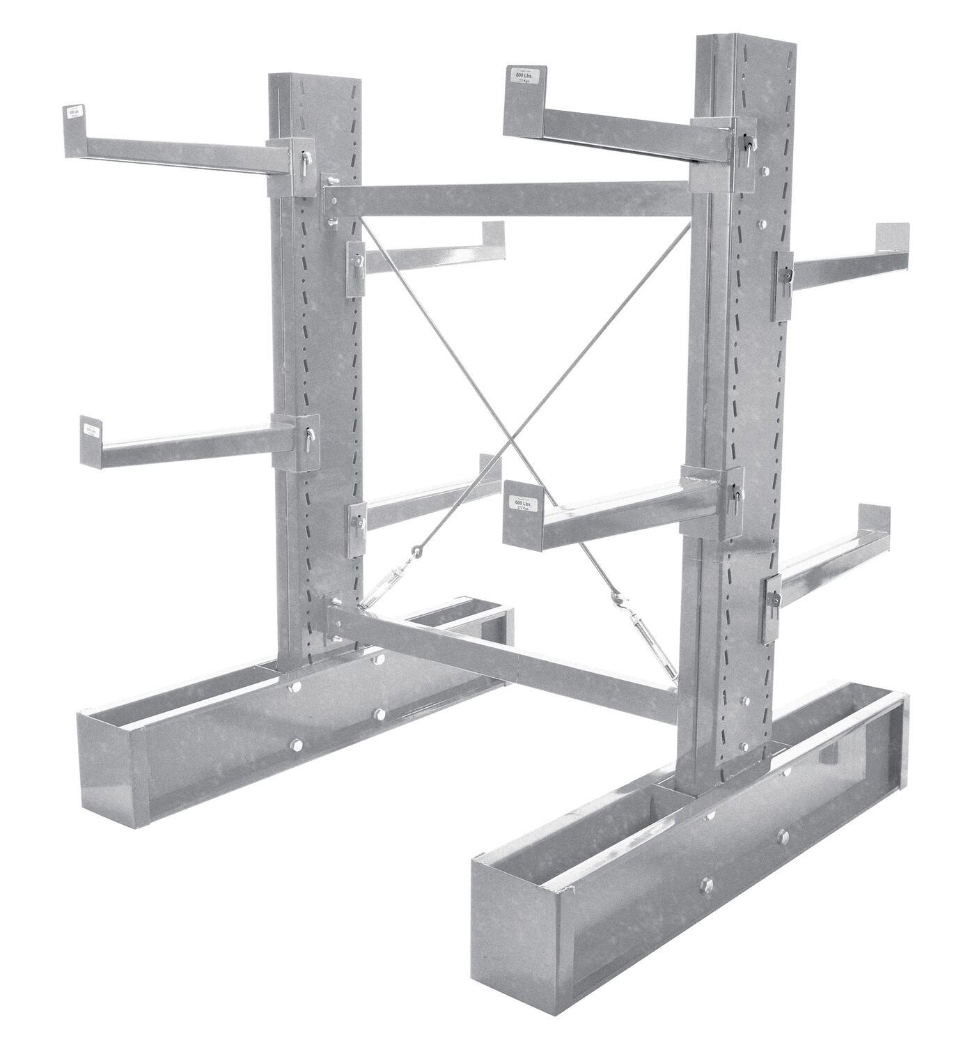 Galvanized Medium Duty Double Sided Cantilever Rack Kit 24 In. Arms 22,000 Lb. Capacity Silver
