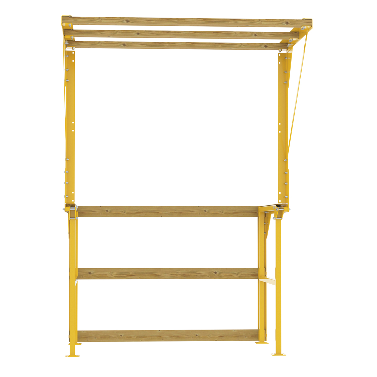 This mezzanine safety gate provides an OSHA required 42" high handrail. To accommodate the load height when utilizing a standard 48"W x 48"D pallet load positioning within the gate is critical. For greatest amount of clearance and item placement flexibility, shorter loads are recommended. Gate design is balanced to allow for easy operation without use of springs. Construction is welded steel with a baked-in powder-coated finish for increased toughness. Ships knockdown to the customer. Wooden cross rails are not included and must be supplied by the customer.