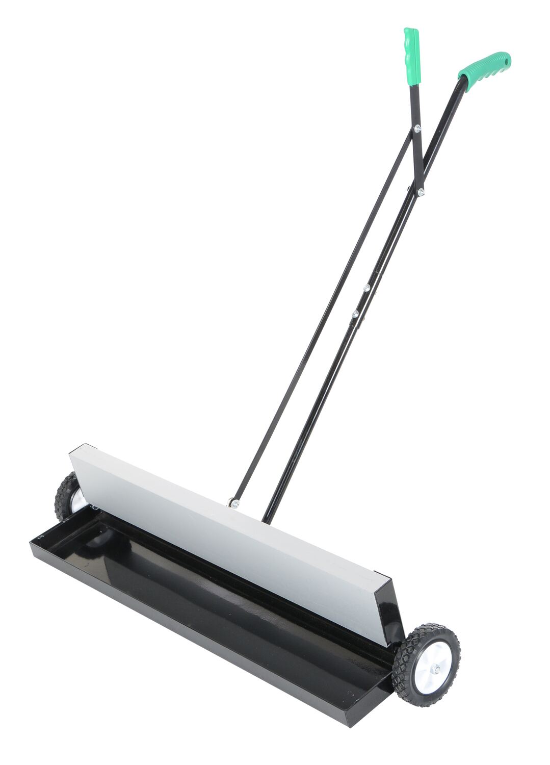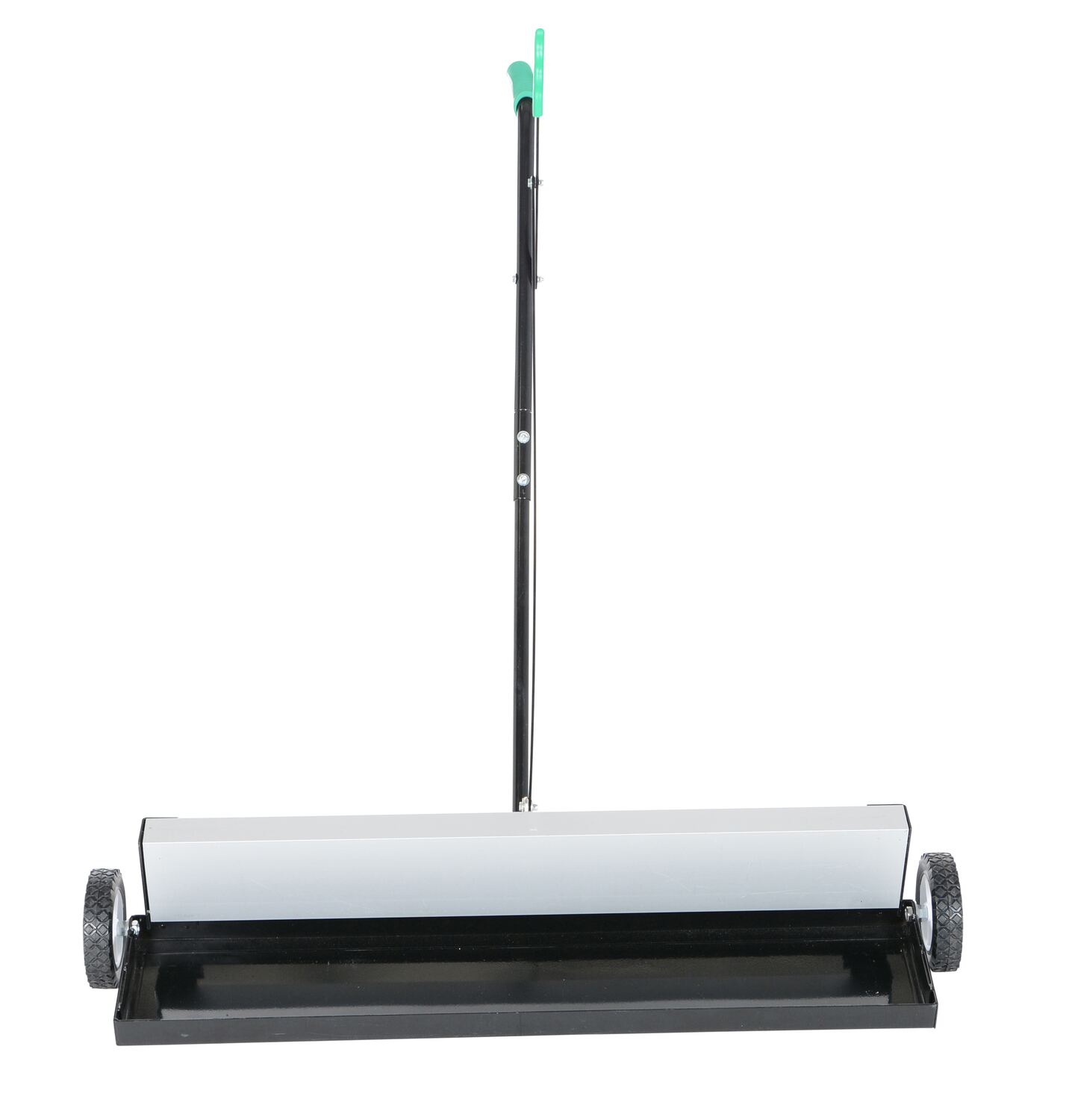 The powerful magnetic sweeper is ideal for manufacturing facilities and construction sites. The sweeper is ergonomically friendly with a handle controlled release. The design and capacity can accommodate large and small materials. While, the bended handle allows for a comfortable upright position during use, the wheels allow smooth rolling for quick and easy collection of objects.