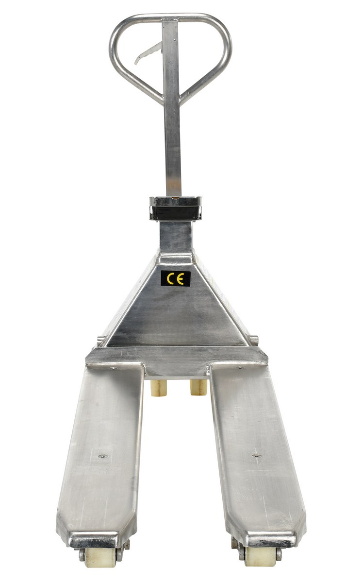 The pallet truck with digital scale allows you to weigh your load on the spot for maximum efficiency. The frame uses heavy-duty steel construction for maximum strength and durability. This model is very user friendly and is suitable for low height lifting. The built-in scale allows you to weigh your load as you are handling it. The scale is selectable in a variety of increments to adjust to the size of your load. It has keyboard calibration and functional setup with automatic zero capabilities. Digital filtering is used to help compensate for vibration and motion to make the pallet truck with digital scale smooth and accurate. Forks are 7" wide each. Factory calibrated for shipping destination. Scale is powered with 4 C batteries. AC adapter included. Step approval also available.