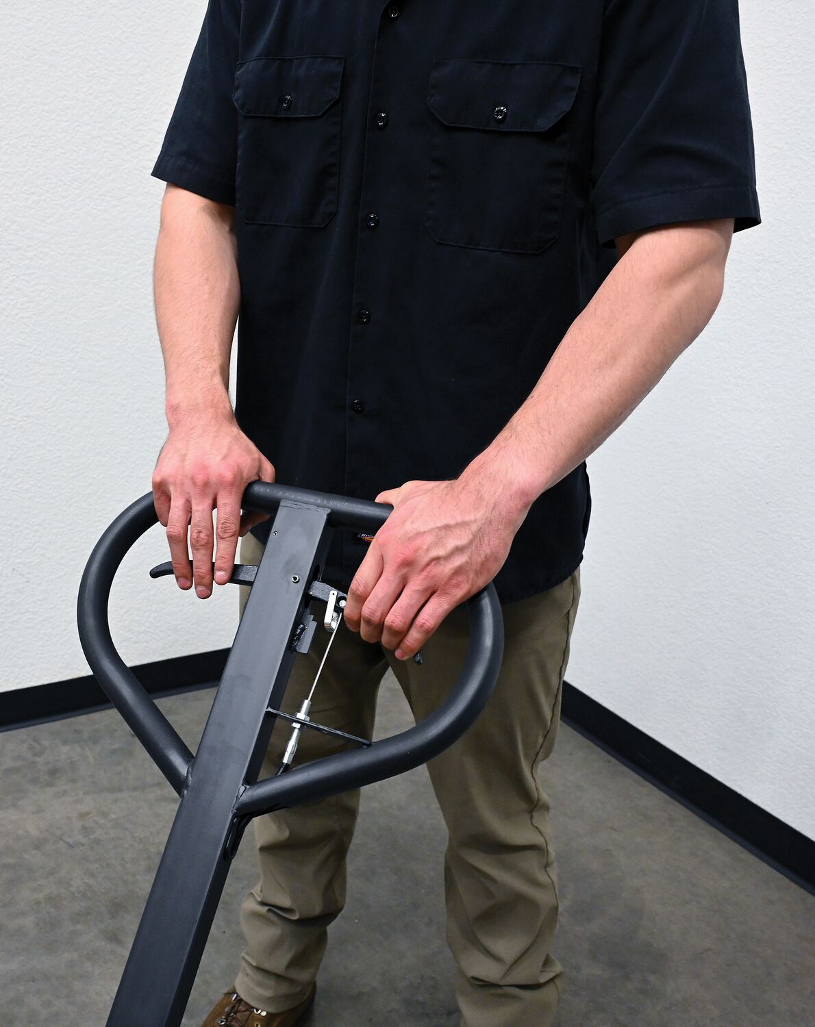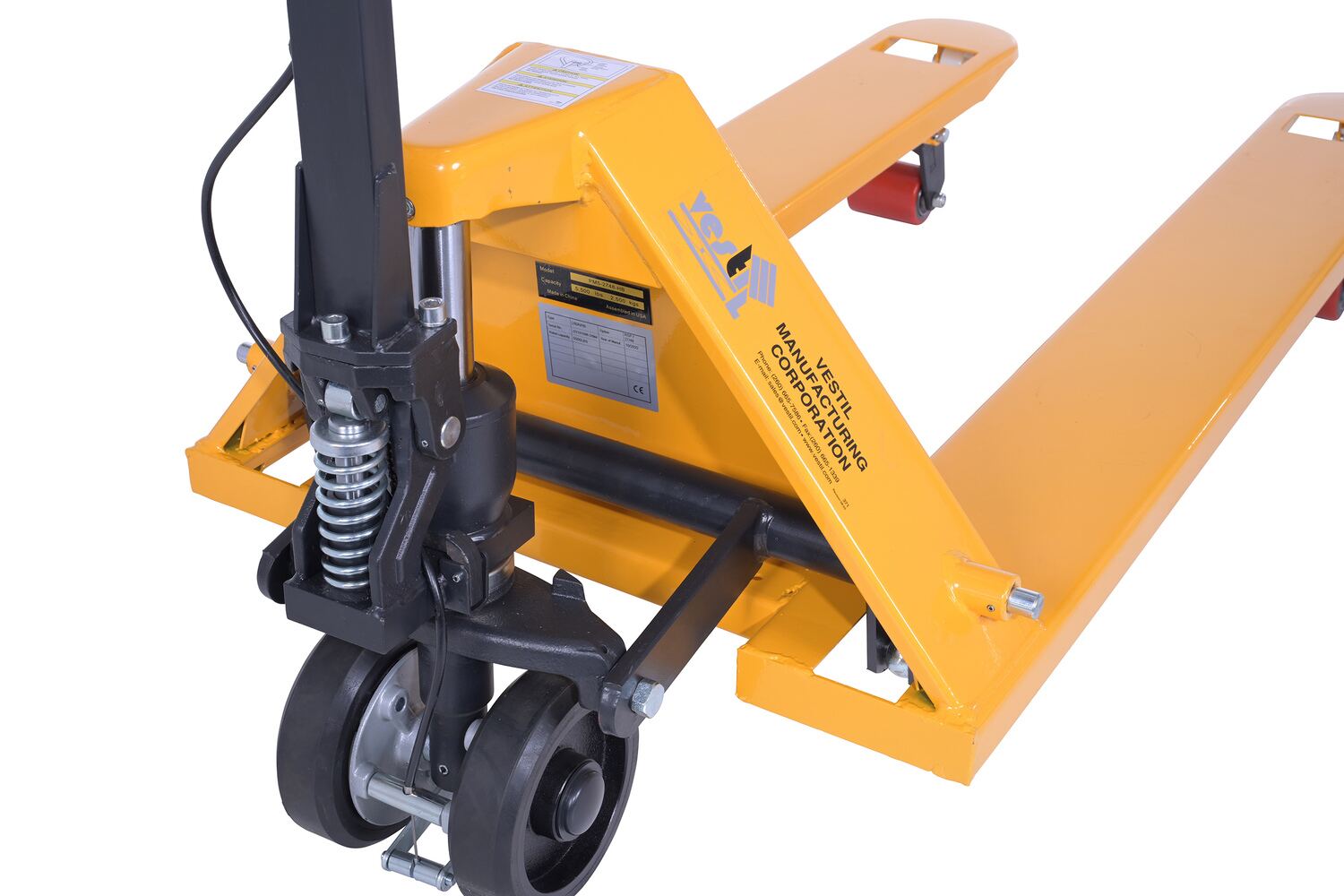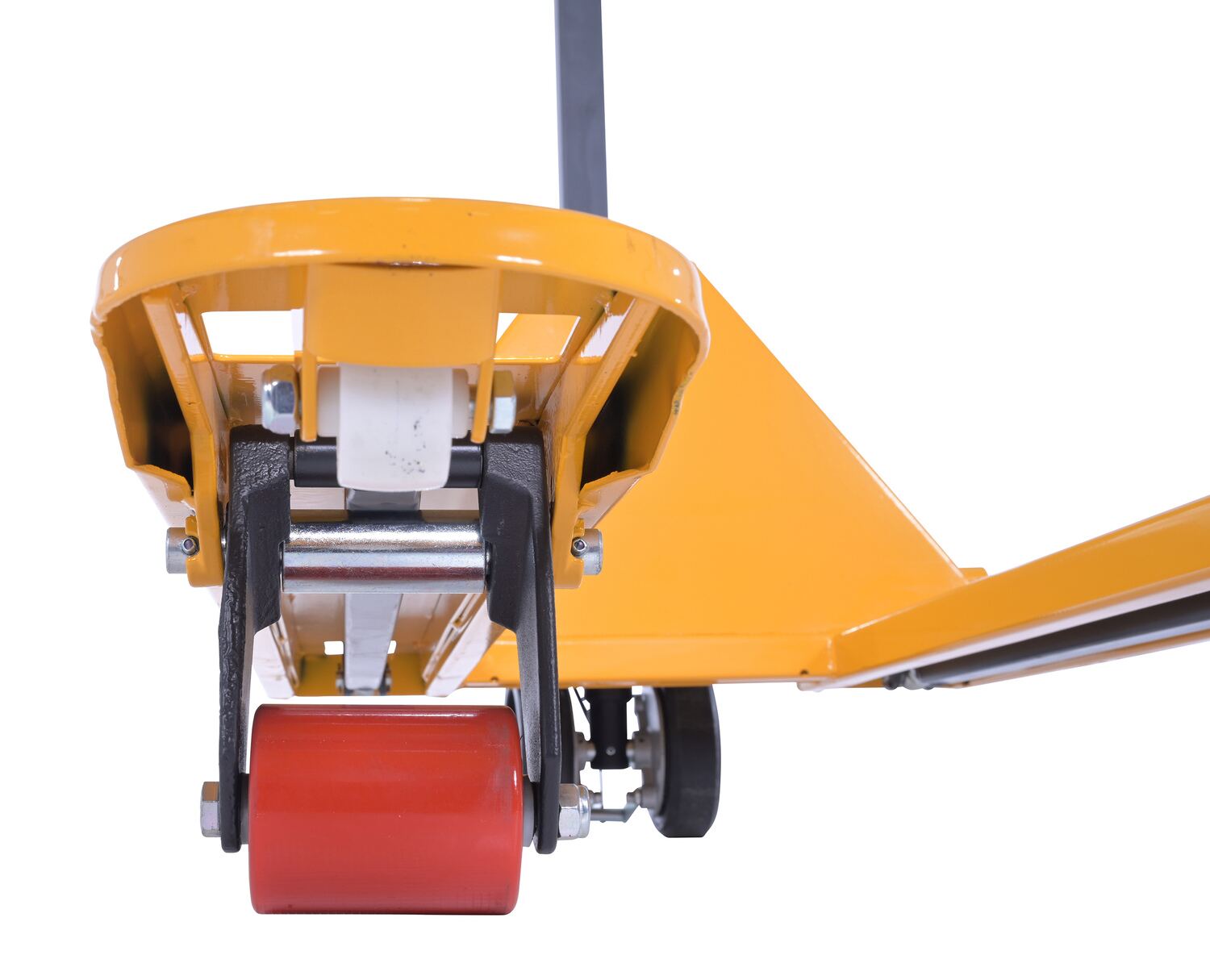 Steel Pallet Truck with Brake 66 In. x 27 In. x 49 In. 5500 Lb. Capacity YellowThe pallet truck with hand brake option allows you to depress the hand brake to slow down or stop truck.
