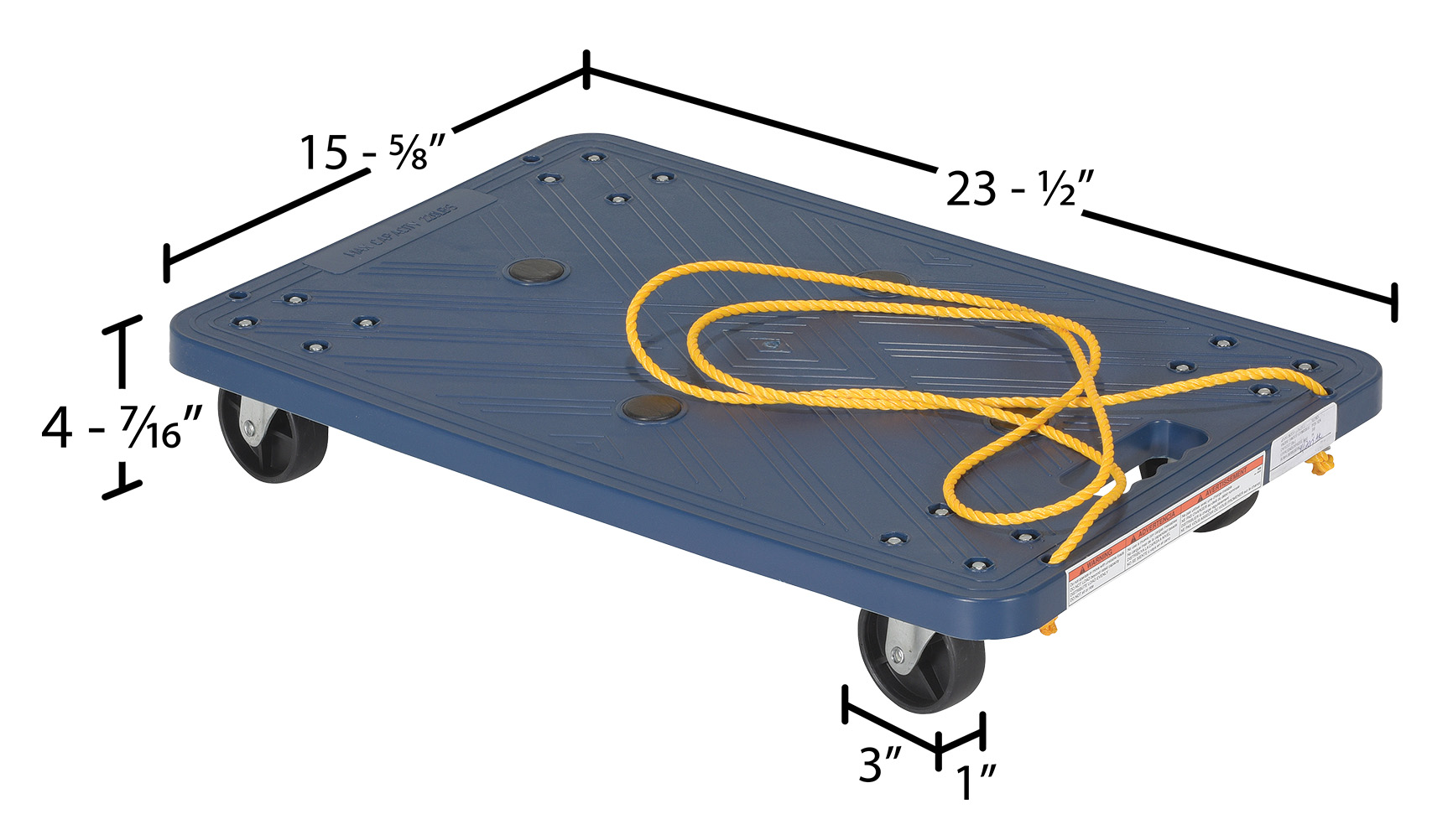 Polyethylene Dolly with Pull Rope 23-1/2 In. x 15-5/8 In. x 4-7/16 In. 220 Lb. Capacity Blue