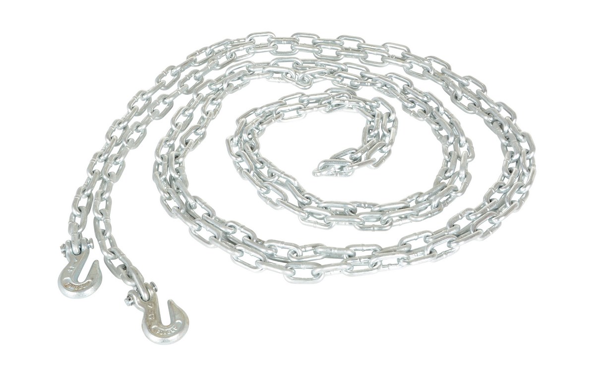 Steel Chain with Grab Hook 20 Ft. Length 1/4 In. Chain 6,000 Lb. Pulling Capacity Silver
