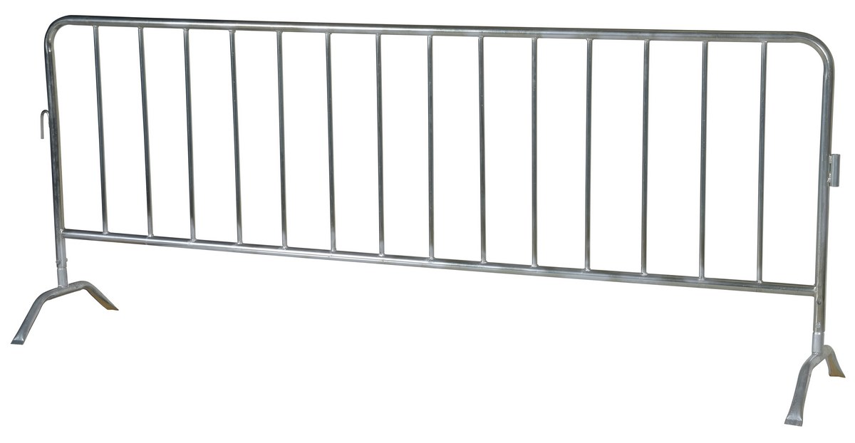 The light weight crowd control interlocking barrier is attractive and the functional design is ideal for directing personnel. Interlocking portable railing has many commercial and industrial applications. Easy to move to meet changing needs. Upright bars are vertically spaced. Each railing includes connectors to attach multiple units together to form long runs. Feet are removable so railing will lay flat for shipping and storage.