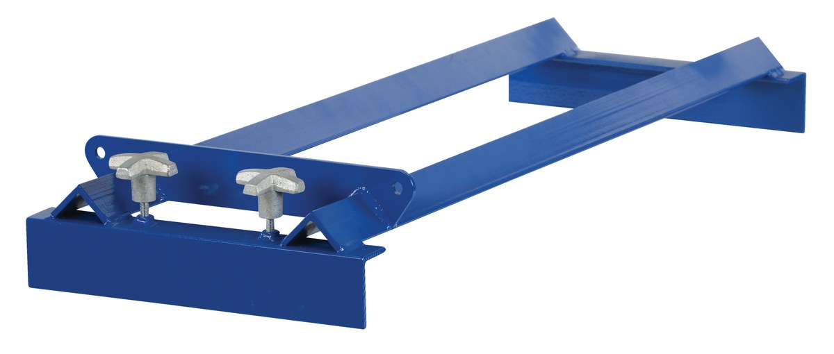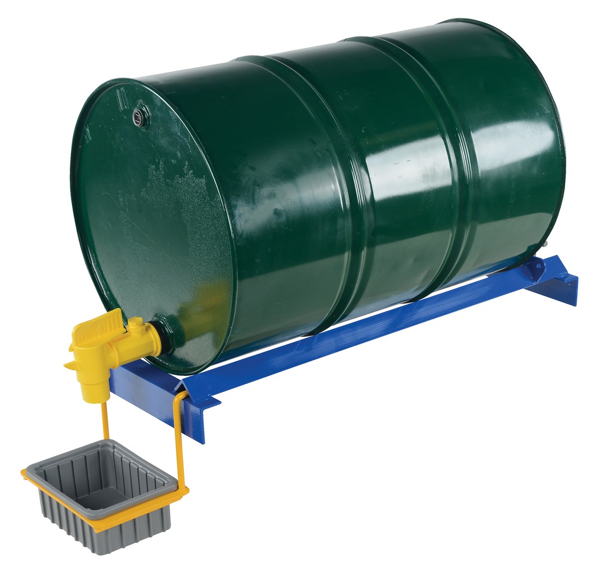 The pallet rack drum cradle converts pallet racks into a versatile horizontal drum cradle. The unit works with either box beams and/or step beams. The drum angle is adjustable by using the height-adjustment bolts (sloping drum allows user to get 3% more fluid out).