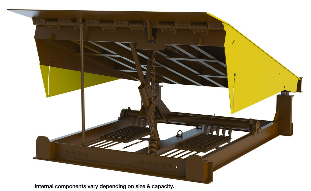 Steel Pull Chain Mechanical Dock Leveler 74"W x 86"L x 24"D Pit Dimensions 50000 Lb. Capacity Brown/Yellow