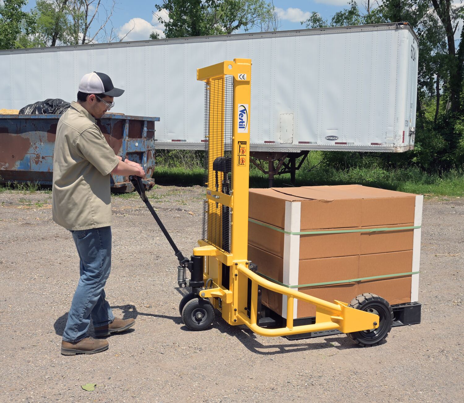 Steel Manual Rough Terrain Stacker 62 In. Raised Height 2,000 Lb. Capacity Yellow
