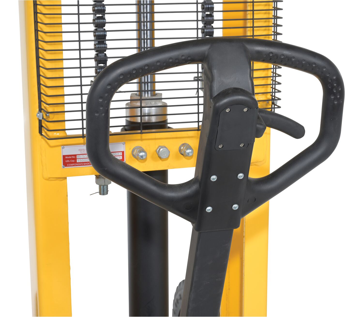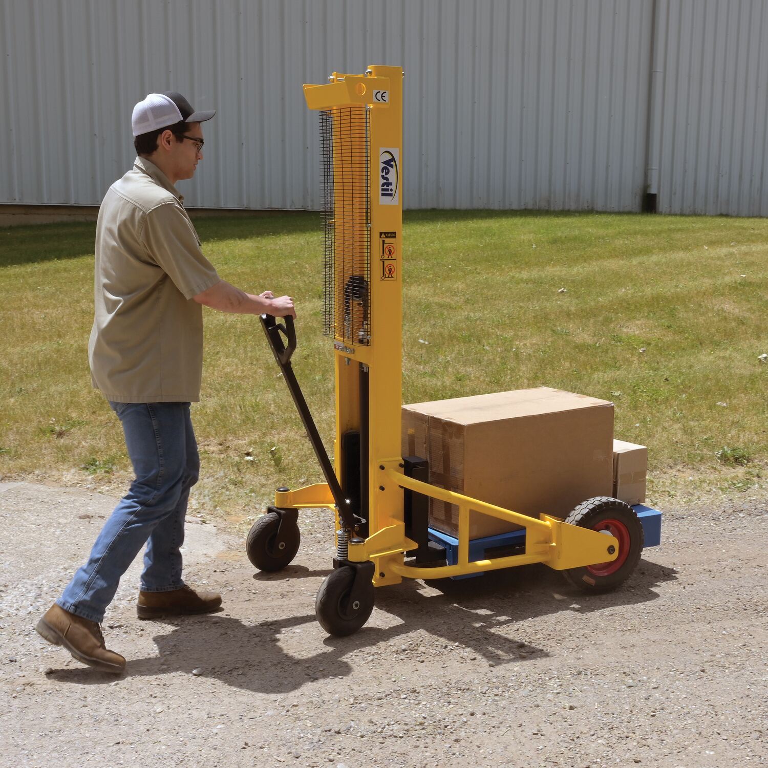 Steel Narrow Manual Rough Terrain Stacker 59 In. Raised Height 1,500 Lb. Capacity Yellow/Black