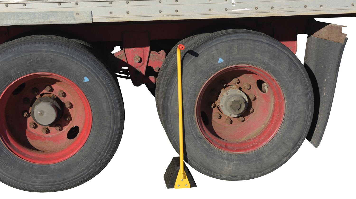 The ergo-handle Wheel Chock has an ergonomic design that makes it easy to move wheel chocks in and out of position under trailer wheels. It reduces the risk of back, knee, and foot injuries. The handle is constructed of steel and has a yellow powder coat finish. Hardware included. Assembly required. D-ring provided for attaching security chain. Chain not included.