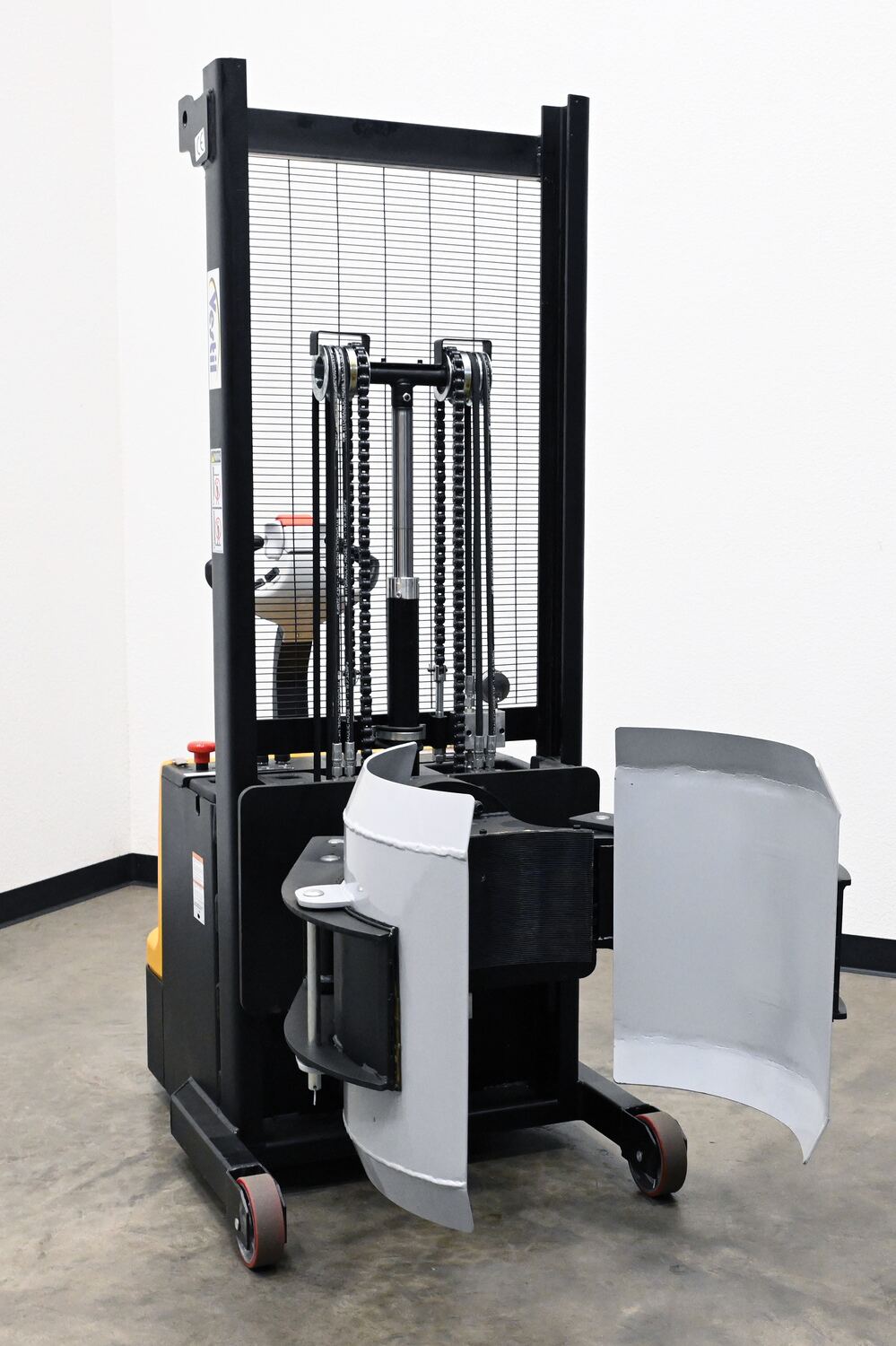 The optional poly drum gripper is more than just another standard attachment. This gripper allows poly drums to be both safely secured and rotated, something standard grippers are incapable of achieving. The wide wing span fits around the drum in a close-fitting but comfortable grasp, minimizing any unnecessary spills during movement. hardware is included.