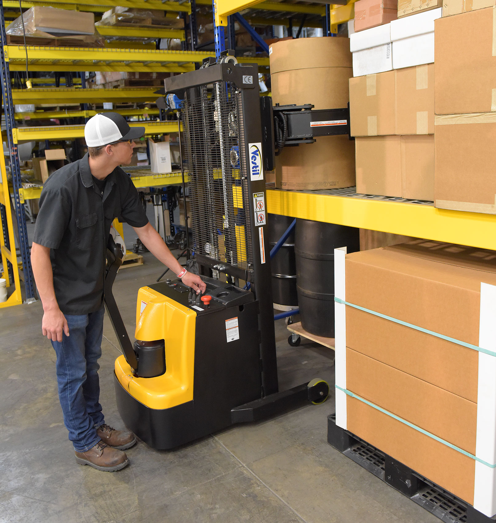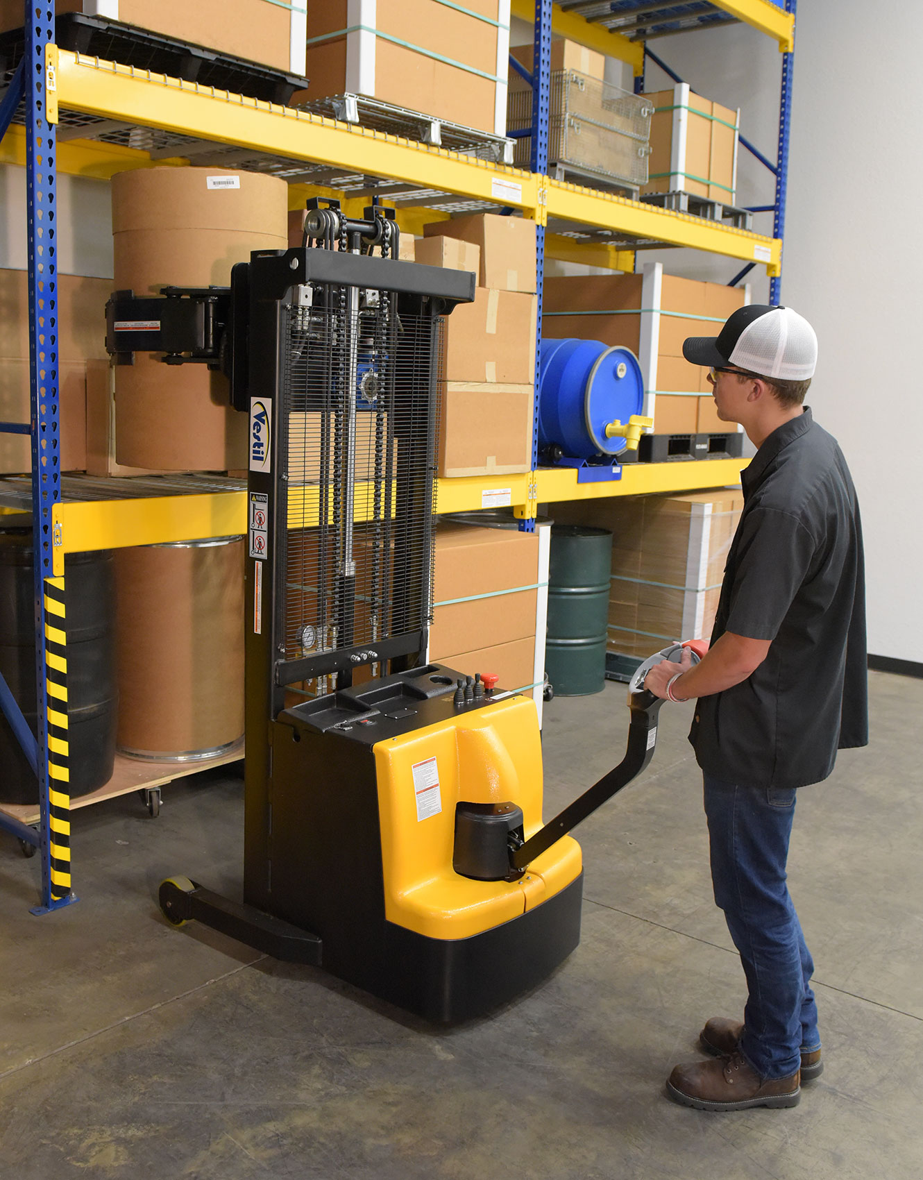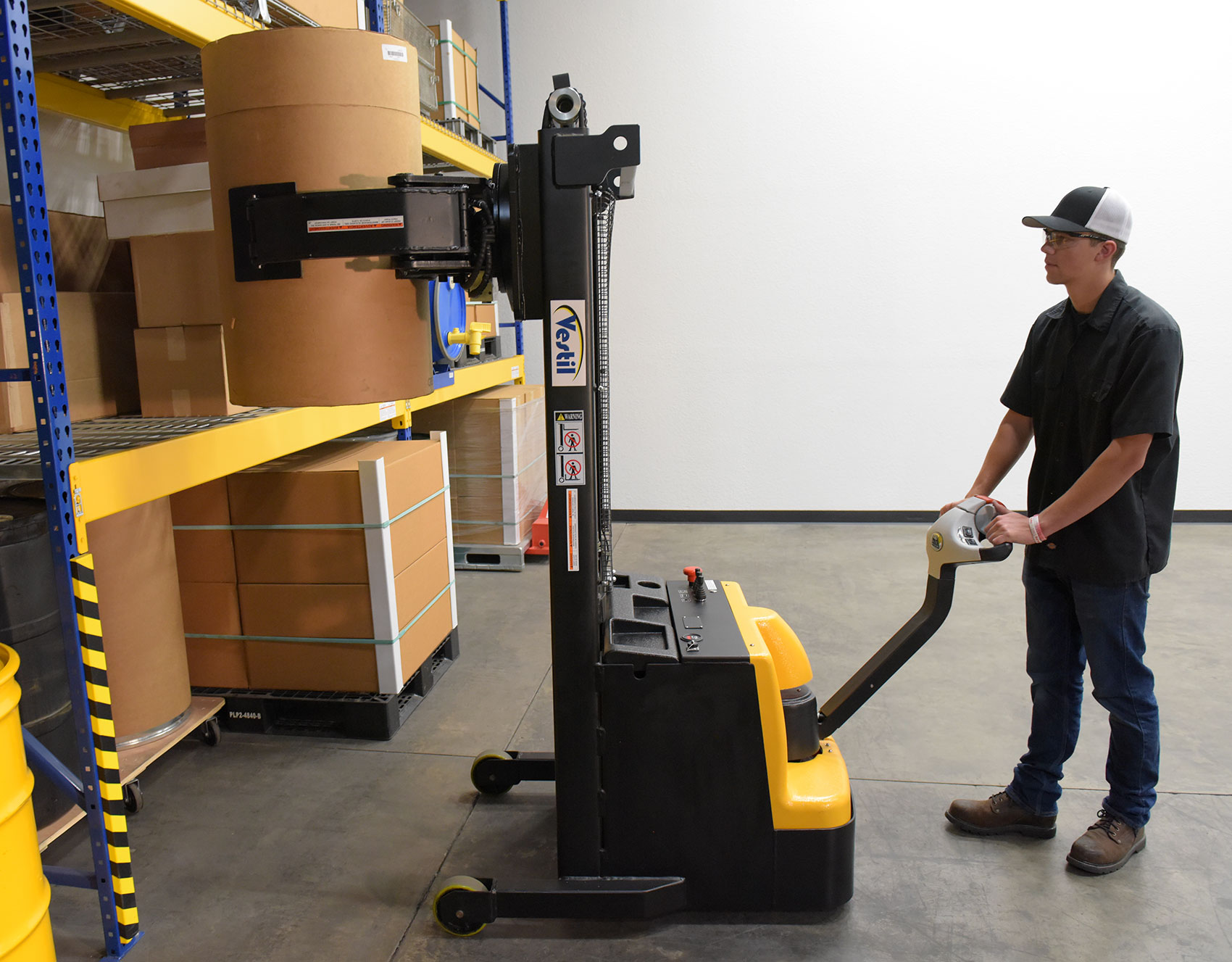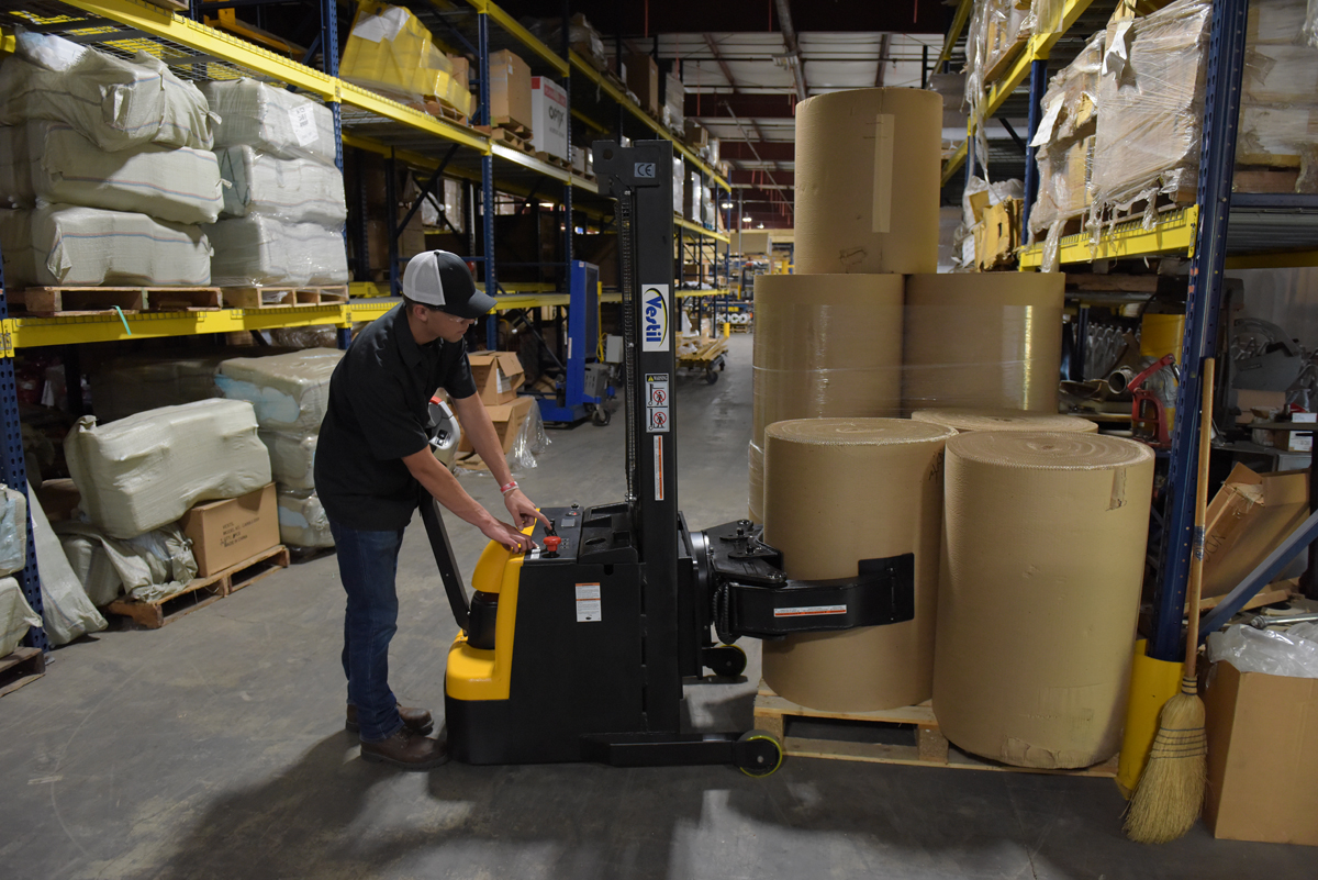 A vertical roll gripper/rotator is perfect for the manufacturing and distributing industries. A walk behind design with a single handle control makes maneuvering into the desired position easy. The compact design allows the unit to get into small areas where other lifting devices can't reach. A robust lifting capacity lets users transfer more rolls in fewer trips, maximizing efficiency. Long term battery charge allows for constant daily use without needless downtime. Powder coated finish for added baked in toughness.