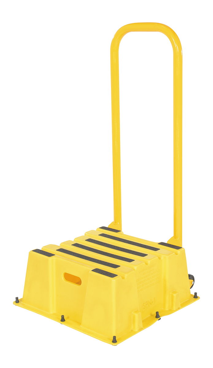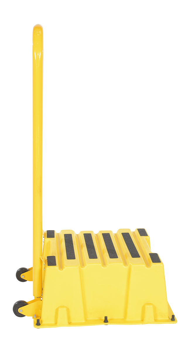 Polyethylene Nestable with Handrails Casters 1 Step 500 Lb. Capacity YellowA poly step stool is a great asset for on the go or in a permanent setting. A lightweight design with front and side cutout handles, allow the user to easily transfer the stool to a preferred spot. The taped step surfaces ensure safe footing while traversing up and down the steps. Includes bolt on handrail and casters. The hand rails height allows the unit to be pushed or pulled into the desired position, minimizing bending and twisting by the user. Steps can be nested to minimize footprint when not in use.