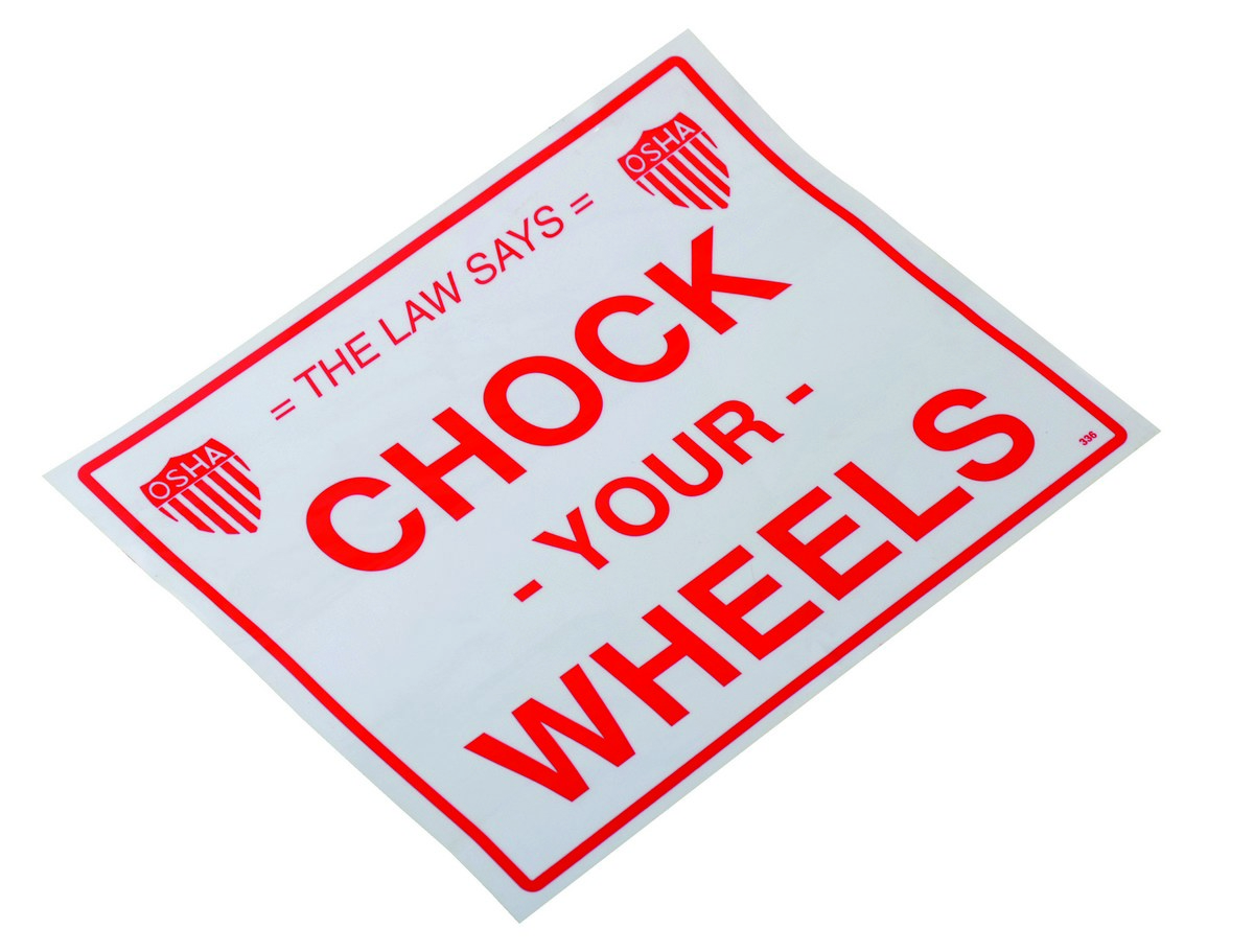 • Highly visible sticker warns trucks and dock workers to chock wheels