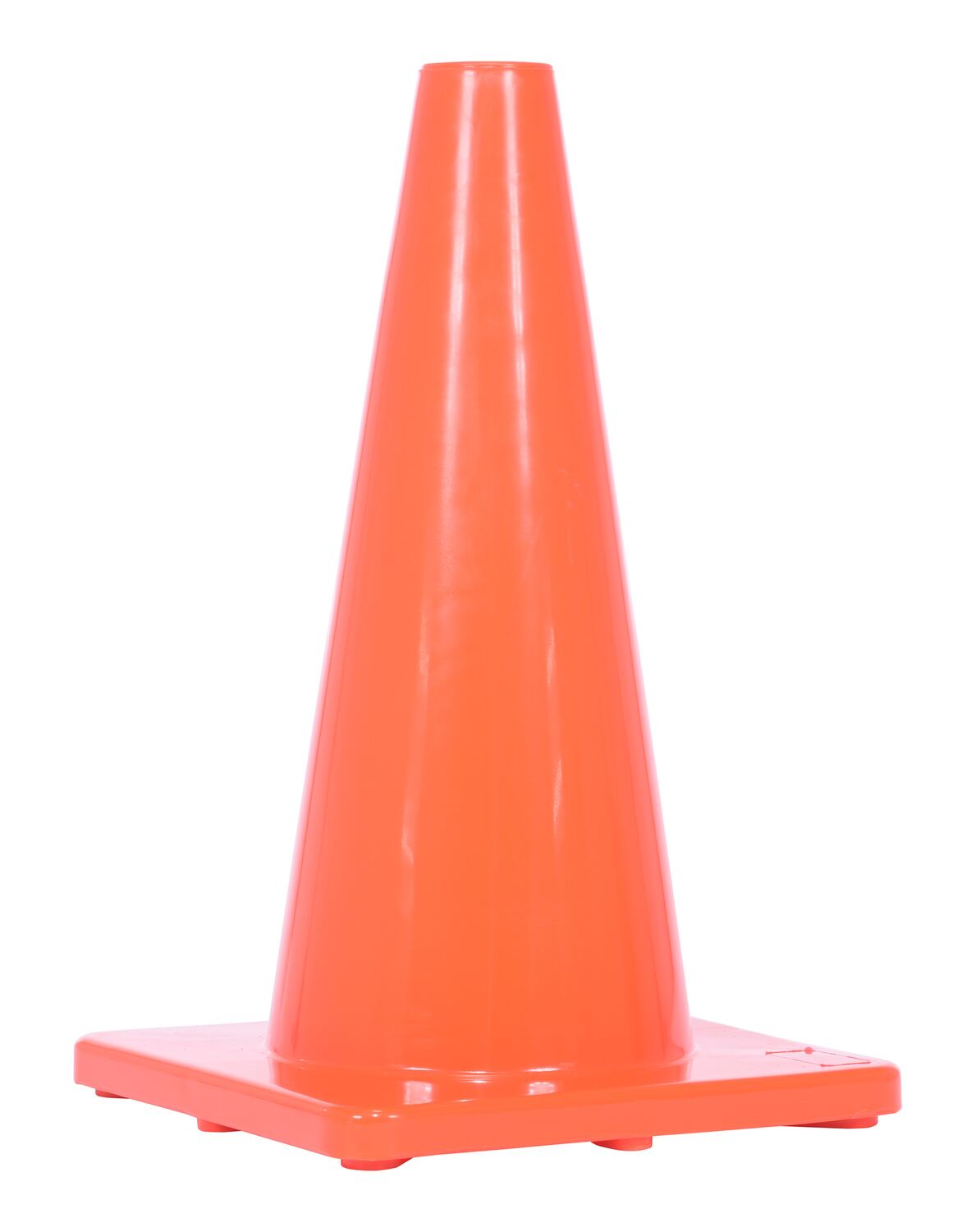100% PVC Standard Duty Traffic Cone 17-3/4 In. Height OrangeThis durable all weather cone is constructed from one-hundred (100) percent PVC for long life. The construction prohibits fading and cracking. Will retain its shape for years of reliable service.
