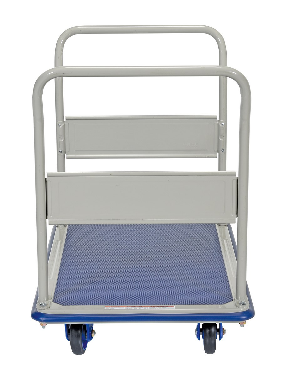The steel platform cart is a great addition to the shipping and distributing facilities. The steel platform creates a durable, yet lightweight construction that can be transferred simply from workstation to workstation. The unit rolls on casters for smooth transference over a variety of terrains. The double handled design creates a more ergonomic posture of personnel during use, while the brake keeps the unit steady when not in progress.