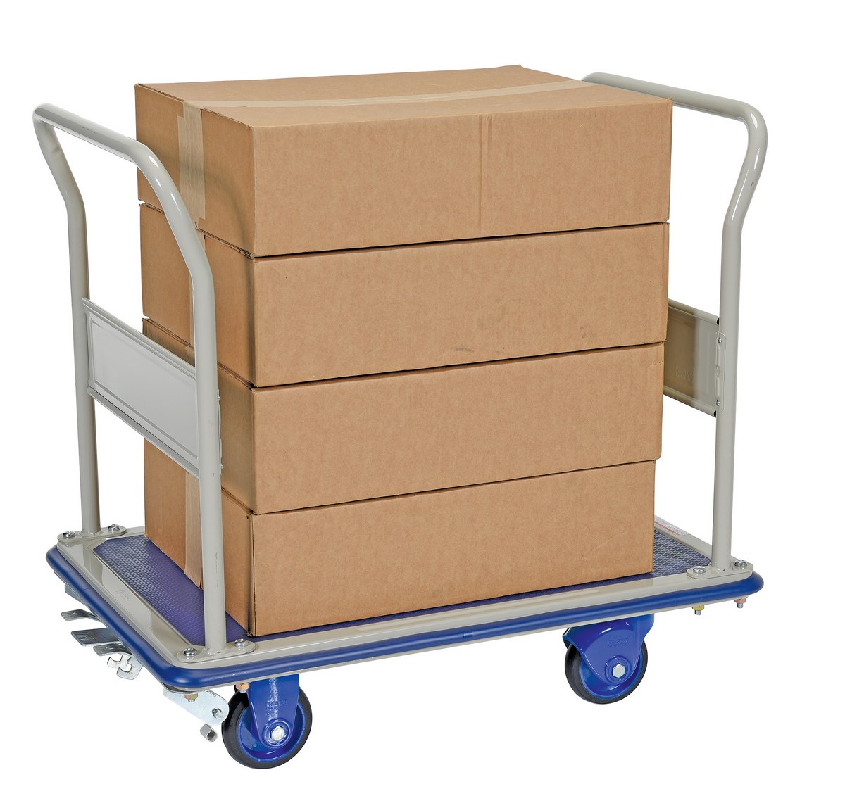 Steel Truck Dual Handles with Floor Brake 39-7/8 In. x 24-1/2 In. x 34-1/8 In. 660 Lb. Capacity Blue