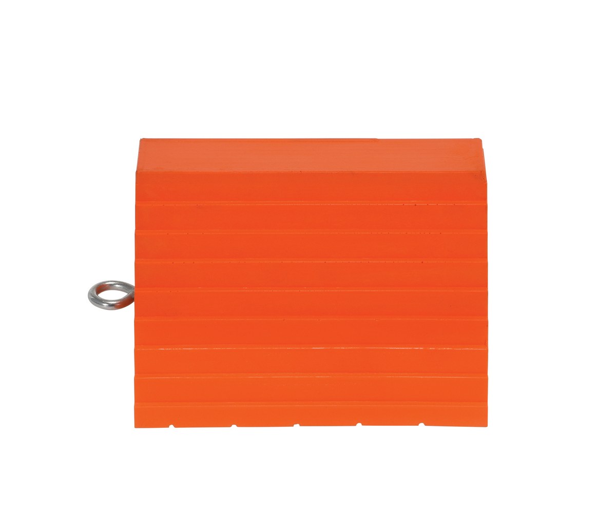 Urethane Standard Eye Bolt Wheel Chock 6 In x 9-1/2 In. x 8 In. 20 Ton Capacity OrangeThe urethane Wheel Chock is bright orange for greater visibility. Incoming and outgoing drivers can easily see for added safety. Safety tread on chock face provides better grip and reduces slippage.