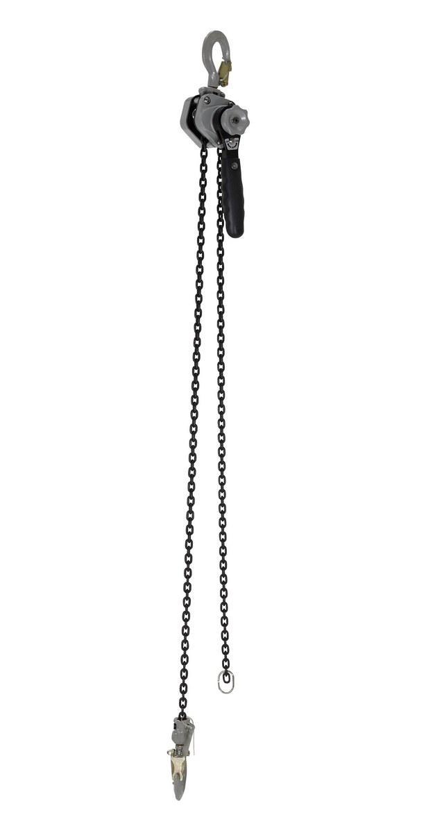Compact and lightweight lever hoists are ideal for use in confined areas when fastening, fixing or positioning of light load is required. High impact aluminum alloy housing with all the main parts made of heat treated alloy steel (more durable and longer life). Advanced gear reduction system (5 gears in the gear box) enables effortless handling and requires low hand-pull force for highly reliable lifting. Withstand 1500 cycles with 110% of rated capacity. Features lightweight high strength grade 100 chain. Heavy duty storage bag included.