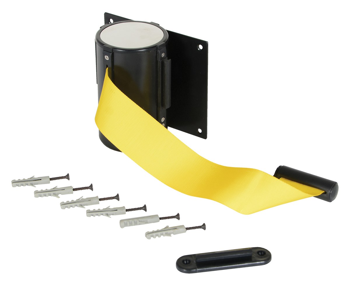 Keep lines flowing smoothly with economical indoor personnel guidance barrier. Perfect for restaurants, offices, hospitals, schools, and banks. Ideal for indoor applications. Series web are not interchangeable with series TSB. This wall mount unit with receptacle includes yellow fabric web. Web end will attach to wall-mounted receiver or another floor-mounted barrier.
