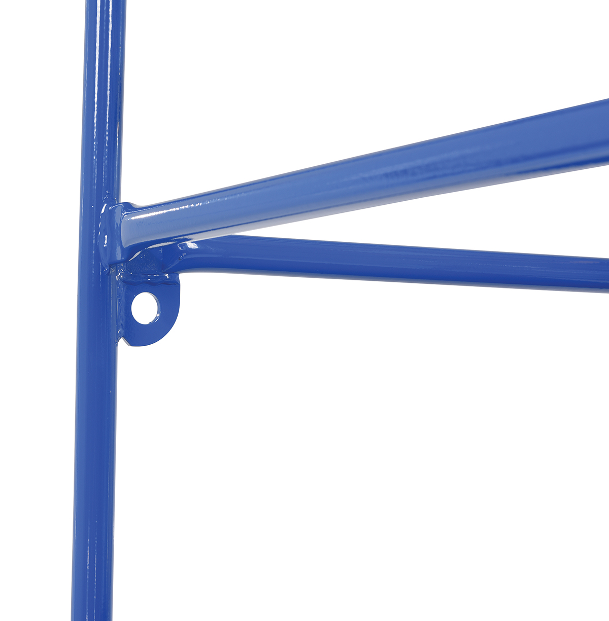 Steel Work Platform With Poly Casters and 84 In. Expanded Back 36 In. x 36 In. 1,000 Lb. Capacity BlueThis convenient fork truck work platform quickly and safely raises maintenance personnel where they are needed. Attaches to fork truck by inserting forks into fork pockets and securing platform to fork truck. Fork locks secure platform to forks. Dual handrails on three (3) sides. Expanded metal backing on fourth side. Includes checker floor plate platform and long strap with hook to attach platform to fork truck. A maximum of two (2) people can be in the work platform at one time. Includes (4) four poly swivel casters. Meets California OSHA specifications.