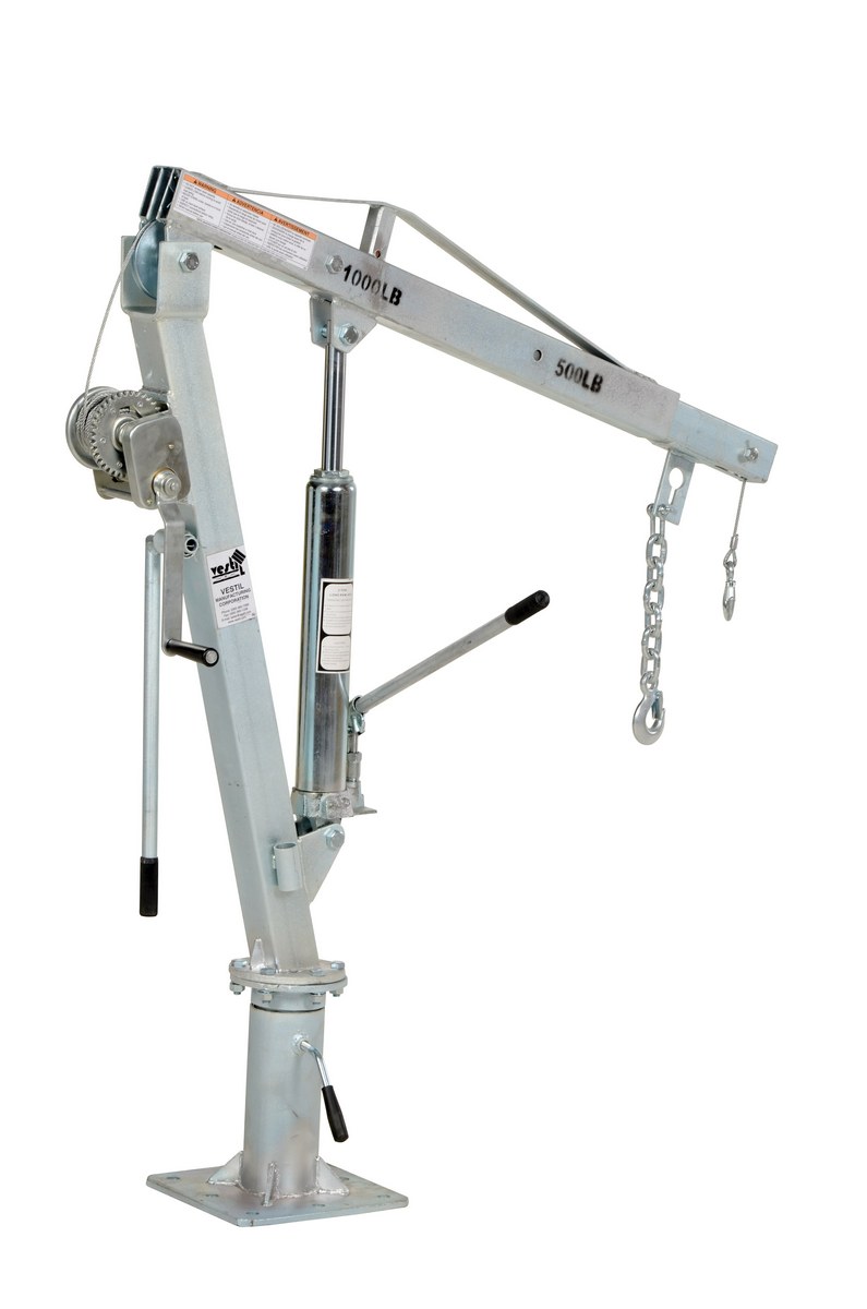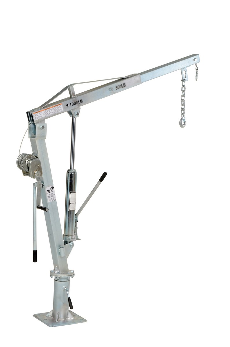 Galvanized Steel Winch Truck Jib Crane 500 Lb. Extended Capacity GrayThis Galvanized winch operated truck Jib crane lifts items from ground to truck bed height, then rotate into cargo area. Includes telescopic boom design with manual hydraulic hand pump to pivot boom up and down. Manual cable winch to lift and lower loads. Unit comes with one grab hook, one chain slot lock, and one sling hook with latch. Unit is designed for vertical lifting only. Do not use unit for lifting personnel or overhead lifting.