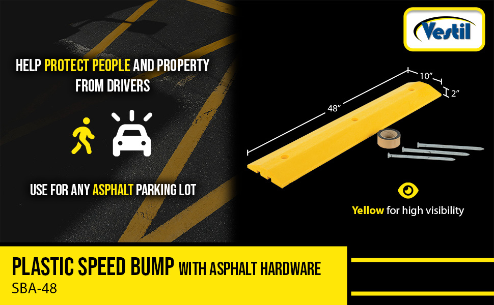 | Plastic Speed Bump Asphalt Hardware 48 In. x 10 In. x 2 In. Yellow | Compression Strength Per Square Inch (lb.): 3200 Number of Mounting Holes: 3 | 42 |