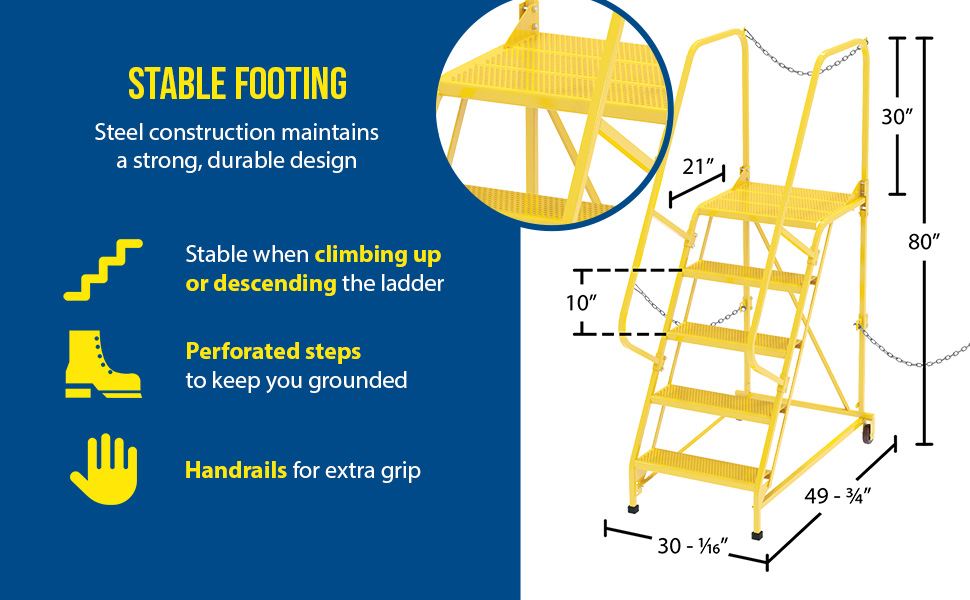 LAD-STAL-5-P-YL LAD-STAL-5-P-YLSteel Semi-Trailer Access Ladder 58 Degree 5 Perforated 24 In. Step Width 350 Lb. Capacity YellowUniform Capacity (lb.): 350