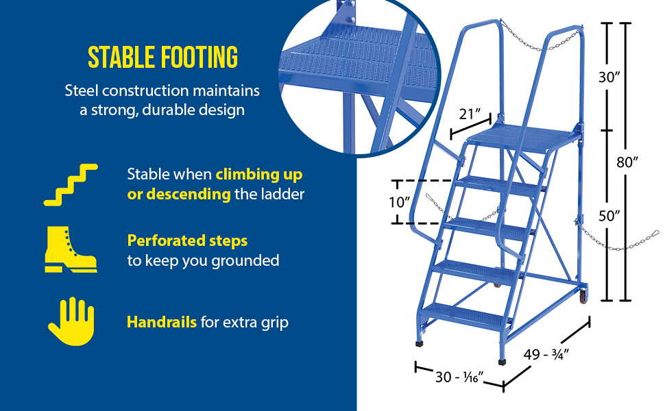 LAD-STAL-5-P LAD-STAL-5-PSteel Semi-Trailer Access Ladder 58 Degree 5 Perforated 24 In. Step Width 350 Lb. Capacity BlueUniform Capacity (lb.): 350