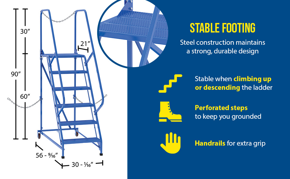 LAD-STAL-6-G LAD-STAL-6-GSteel Semi-Trailer Access Ladder 58 Degree 6 Grip Strut 24 In. Step Width 350 Lb. Capacity BlueUniform Capacity (lb.): 350