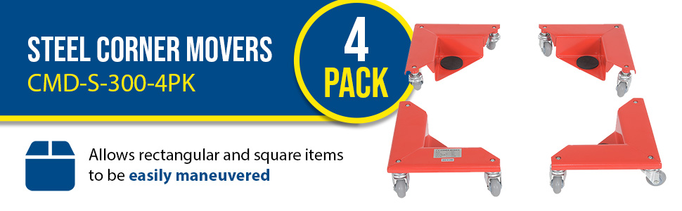 CMD-S-300-4PK CMD-S-300-4PKSteel Corner Mover Dolly 4 Pack 300 Lb. Capacity RedUniform Capacity, Set (lb.): 1200