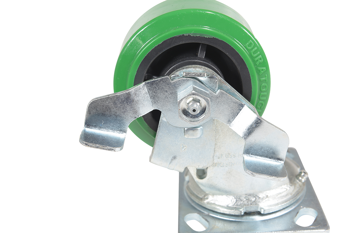 Made with 100% pure polyurethane tread. This caster is a great upgrade for standard polyurethane. Designed using a new liquid cast flow fusion that ensures a 100% mechanical bond to core and "zero" trapped air. It has a high resistance to debris and most chemicals. The proprietary tread provides good floor preservation, and has a longer life performance than standard polyurethanes. Green tread color. 90-95 shore a. Wheel center is constructed of polyolefin.