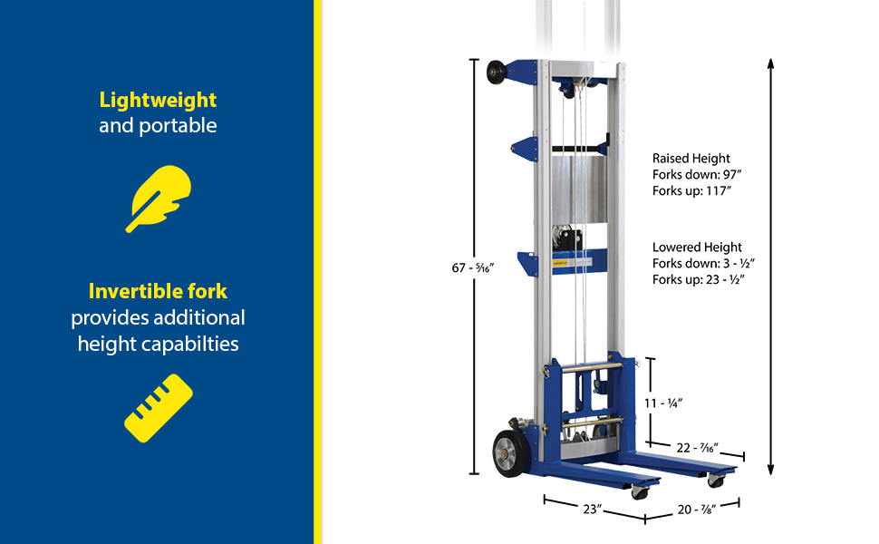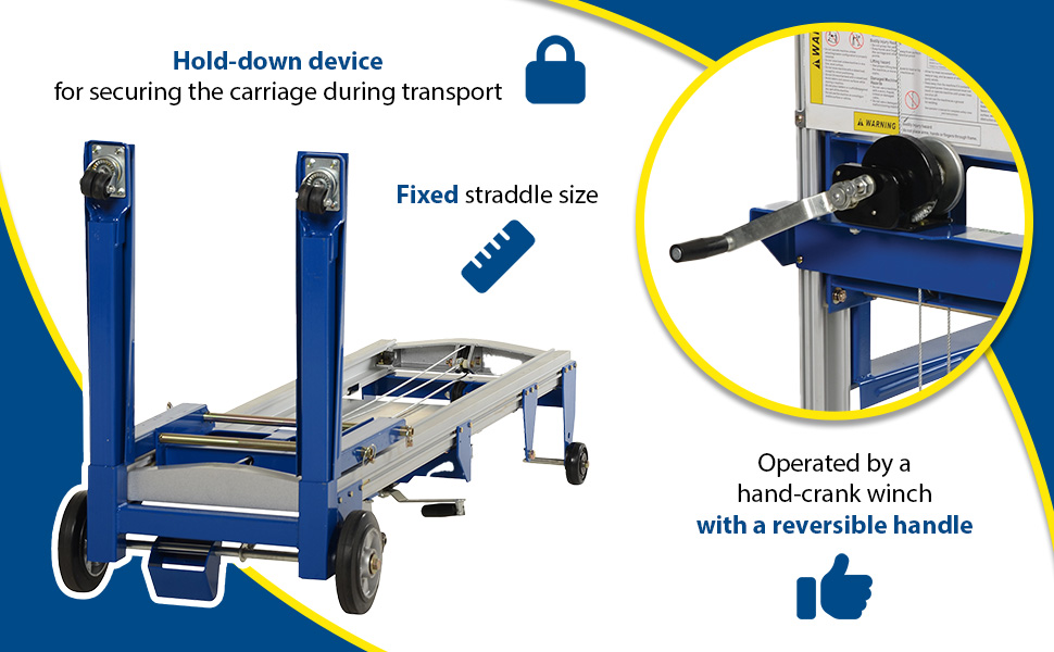 A-LIFT-S-HP A-LIFT-S-HPAluminum/Steel Adjustable Straddle Manual Hand Winch Lift Trucks 400 Lb. Capacity Silver/BlueUniform Capacity (lb.): 400