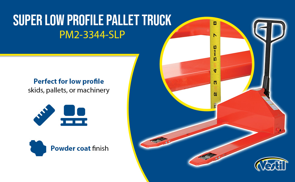 • Super low profile pallet truck is ideal for extra low applications
