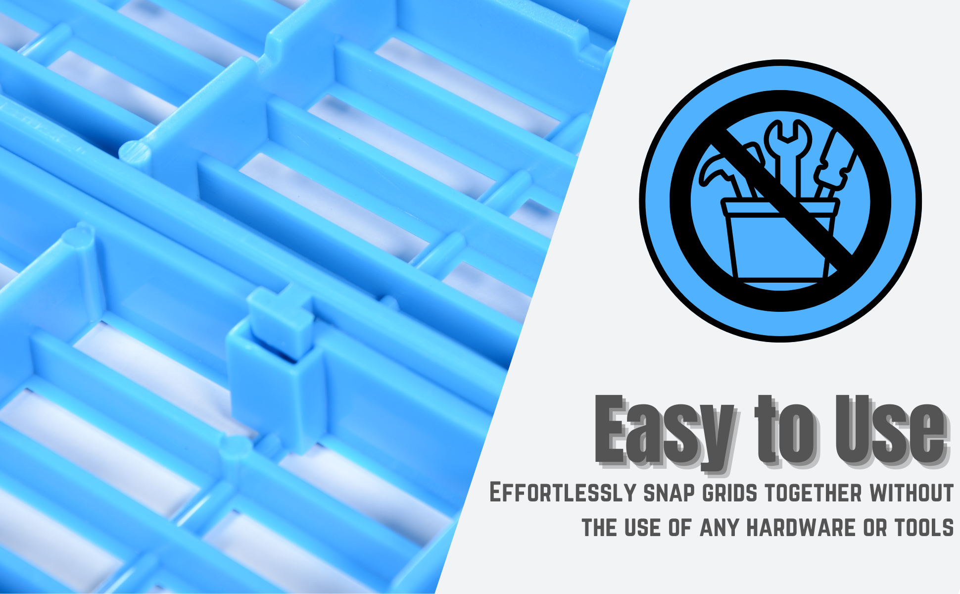 • Floor grids are lightweight, easy to attach with no hardware necessary