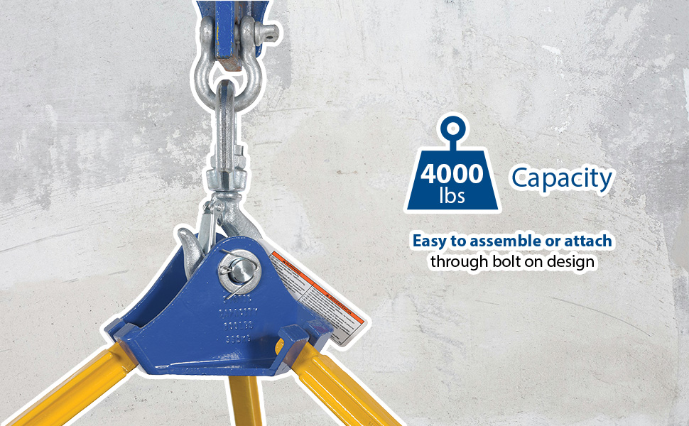 Easily connects to Hoisting Hooks, Hook Plates or Booms. Variety of capacities available. Forged steel construction. (HOOK-S series pictured above)