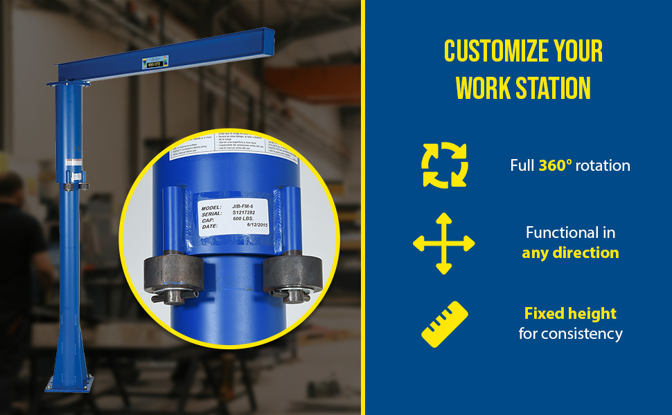 JIB-FM-20 JIB-FM-20Steel Floor Mounted Jib 80 In. I-Beam 2000 Lb. Capacity BlueUniform Capacity (lb.): 2000