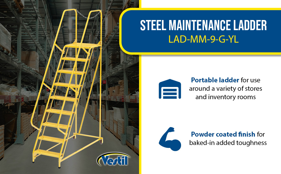 | Steel Maintenance Ladder 58 Degree 9 Perforated 24 In. Step Width 350 Lb. Capacity Yellow | Uniform Capacity (lb.): 350 Step Angle (degrees): 58 | 279 |