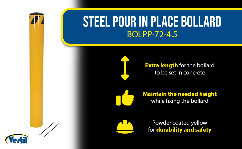BOLPP-72-4.5 BOLPP-72-4.5Steel Pour In Place Bollard 72 In. x 4-1/2 In. YellowUsable Height (in.): 72