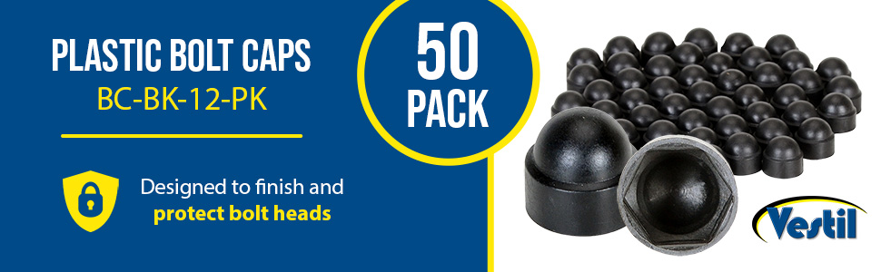 BC-BK-12-PK BC-BK-12-PKPlastic Bolt Caps 50 Pack 1/2 In. Anchor Size BlackFits Hex Bolt Size (in.): 3/4