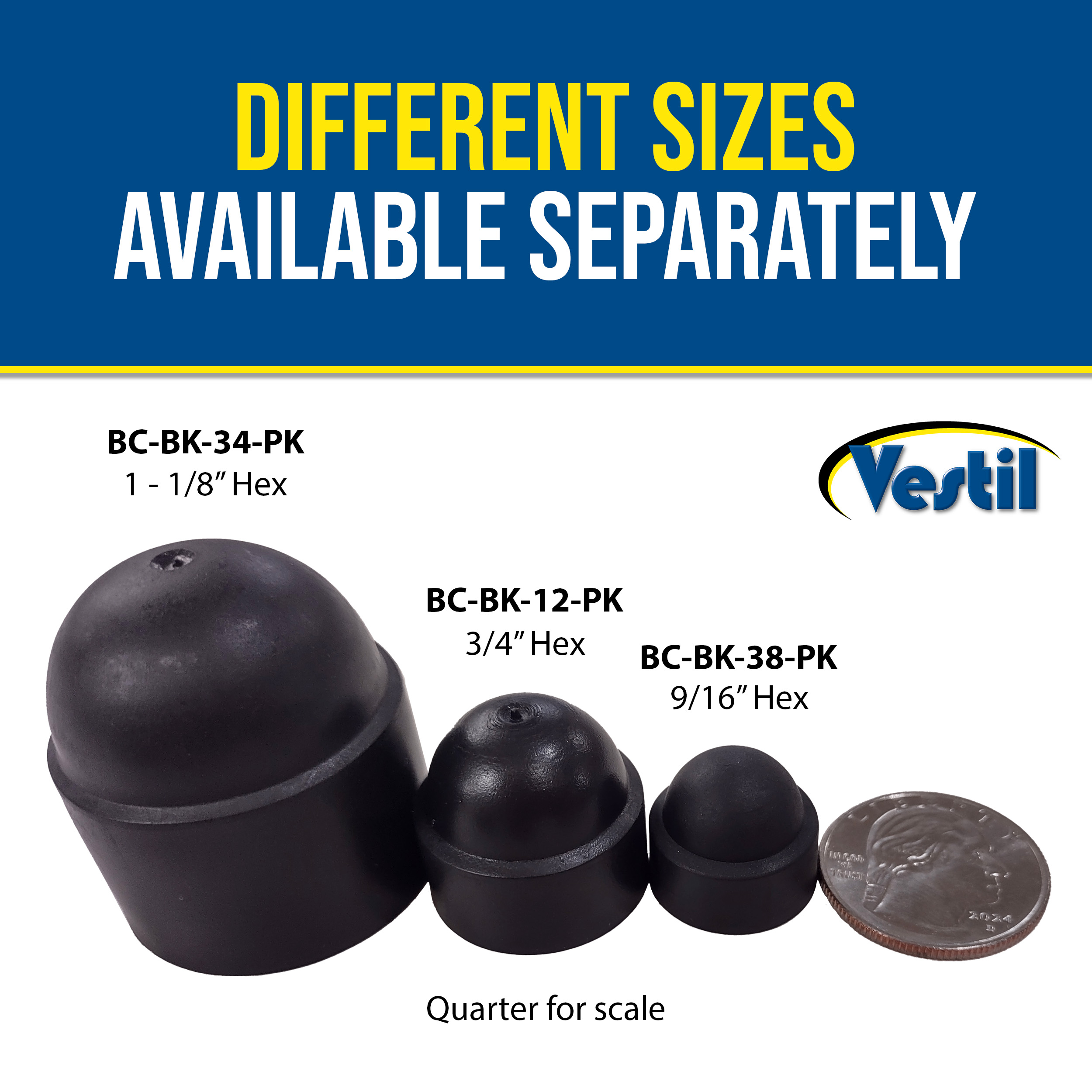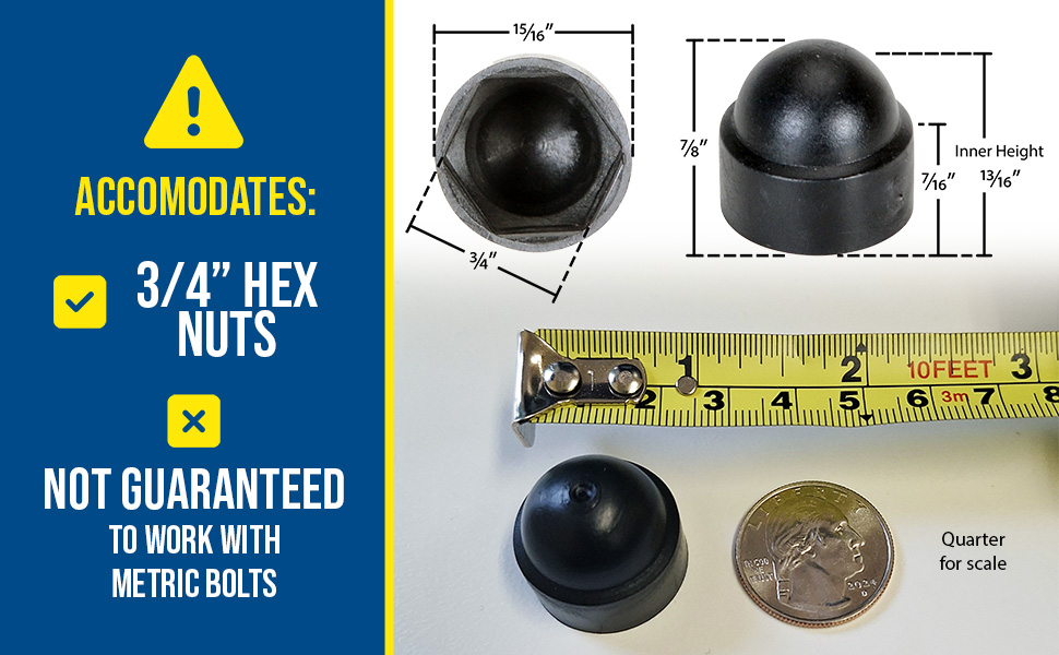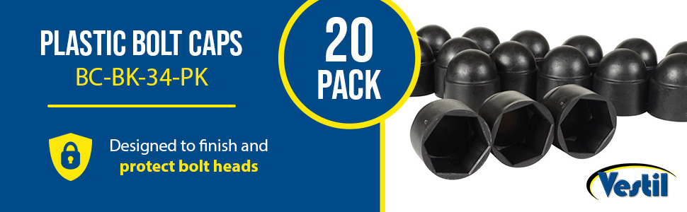 BC-BK-34-PK BC-BK-34-PKPlastic Bolt Caps 20 Pack 3/4 In. Anchor Size BlackFits Hex Bolt Size (in.): 1-1/8
