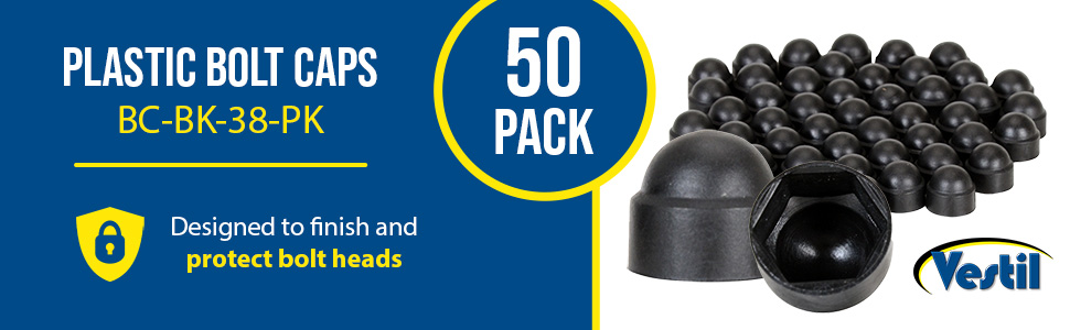 BC-BK-38-PK BC-BK-38-PKPlastic Bolt Caps 50 Pack 3/8 In. Anchor Size BlackFits Hex Bolt Size (in.): 9/16